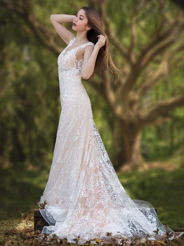 Εντυπωσιακό νυφικό με ολοκέντητη δαντέλα