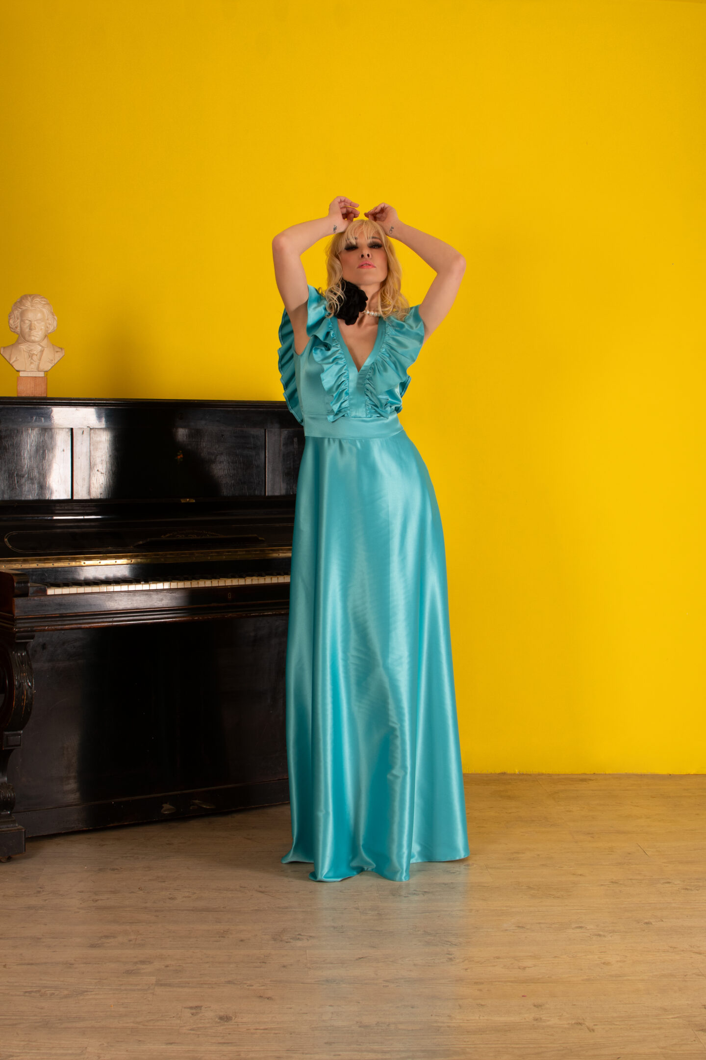 Midi φόρεμα με με φούστα πλισέ και μπούστο παγιέτα σε μπλε
