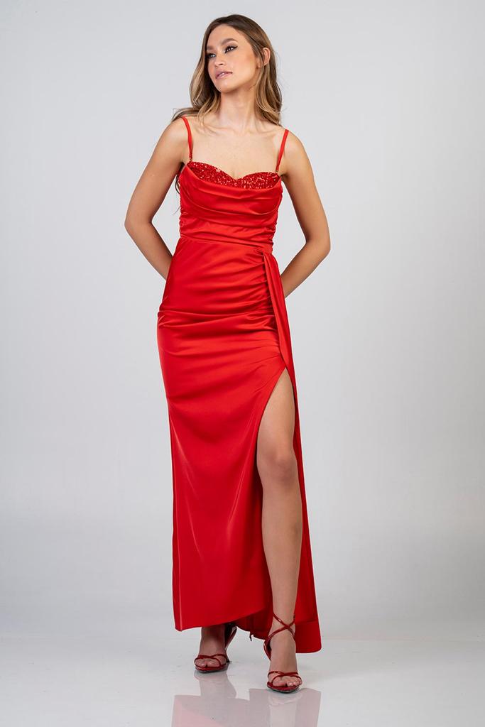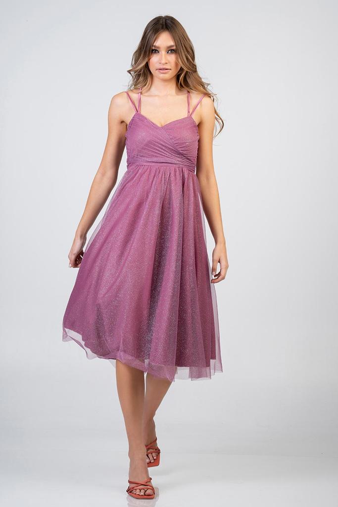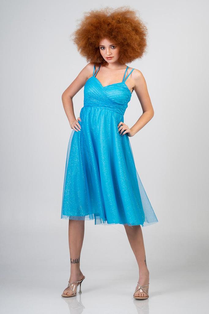Midi φόρεμα με με φούστα πλισέ και μπούστο παγιέτα σε μπλε