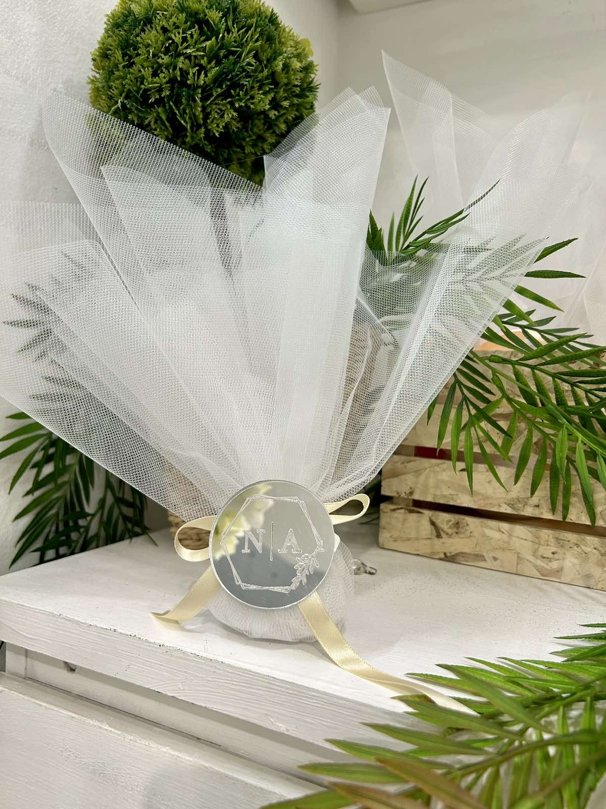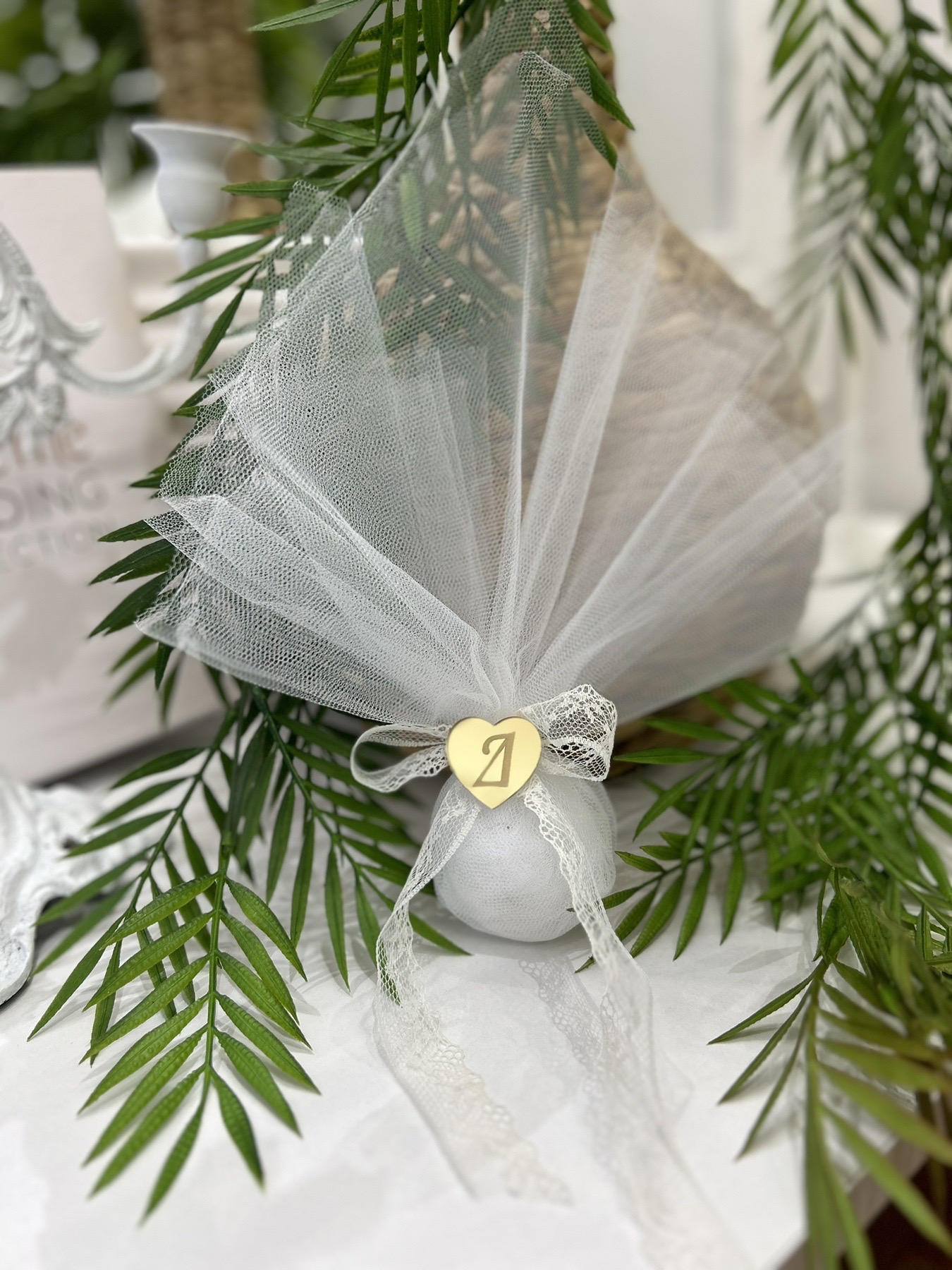 Μπομπονιέρα γάμου με χαραγμένα μονογράμματα