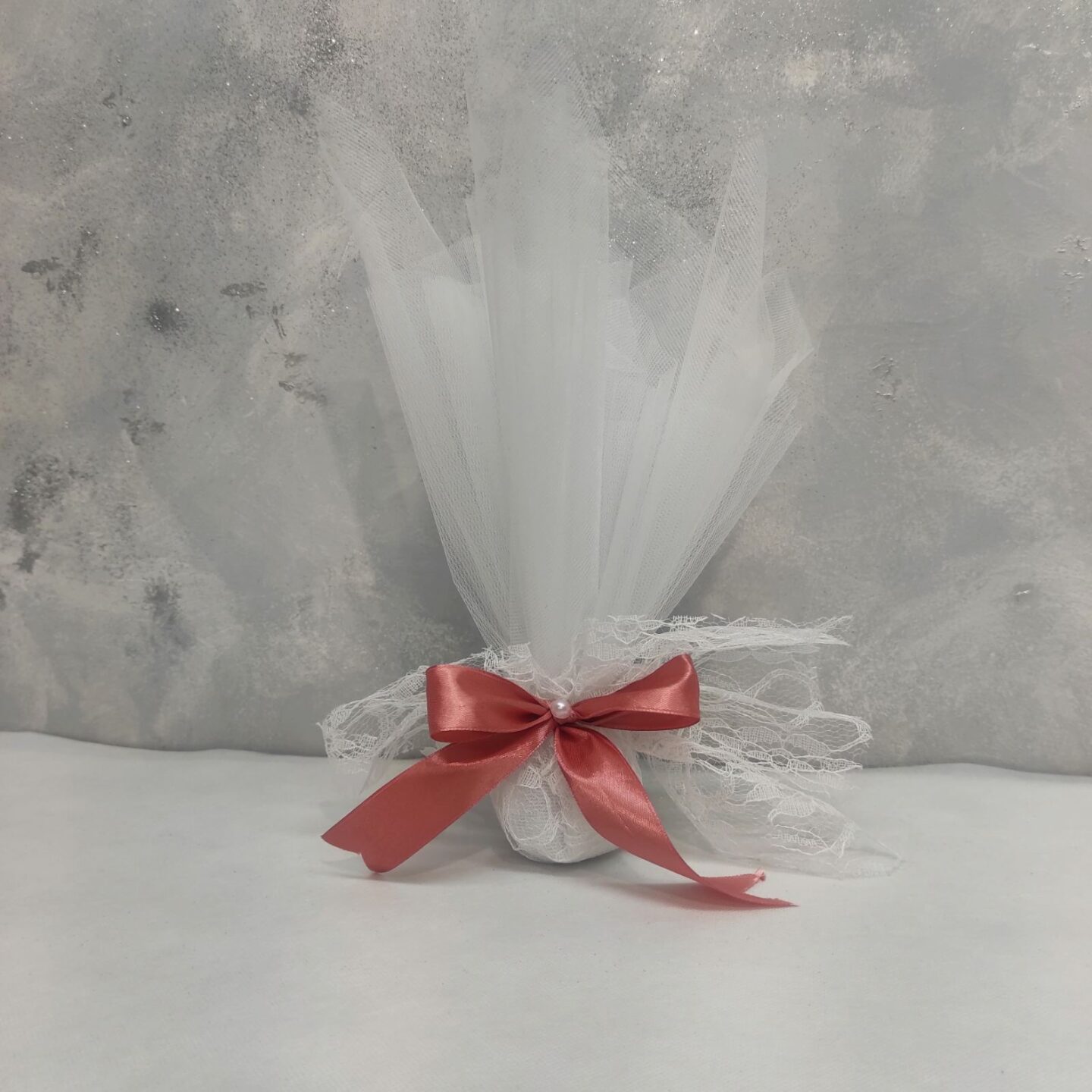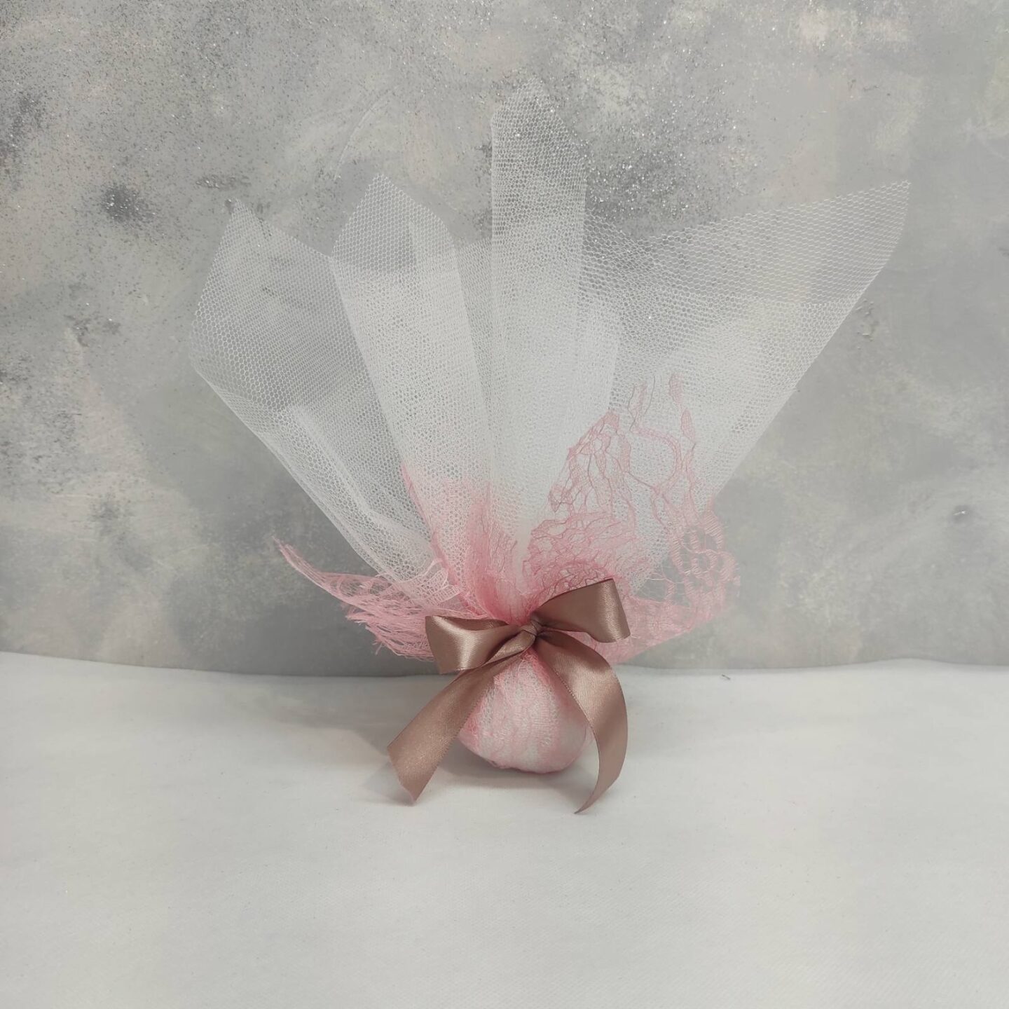 Μπομπονιέρα τούλινη με δαντέλα και σατέν κορδέλα