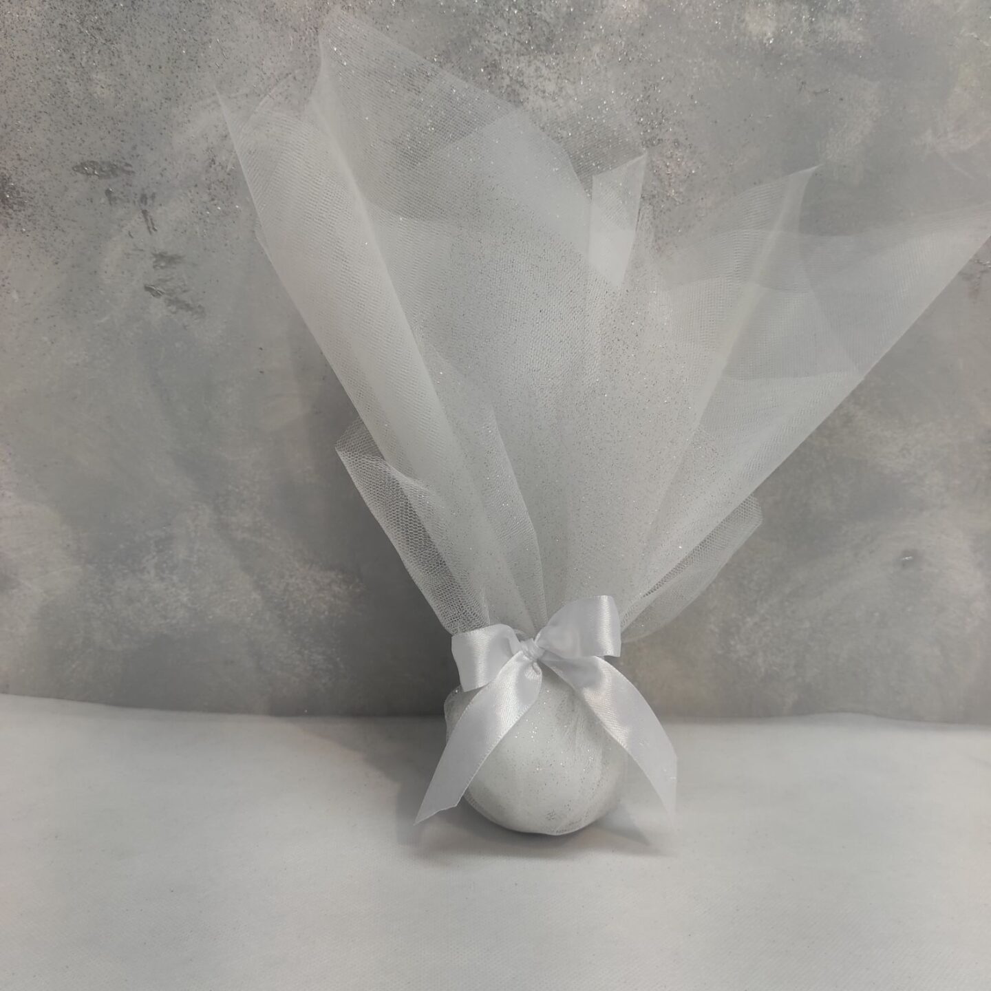 Μπομπονιέρα τούλινη γκλίτερ με σατέν κορδέλα