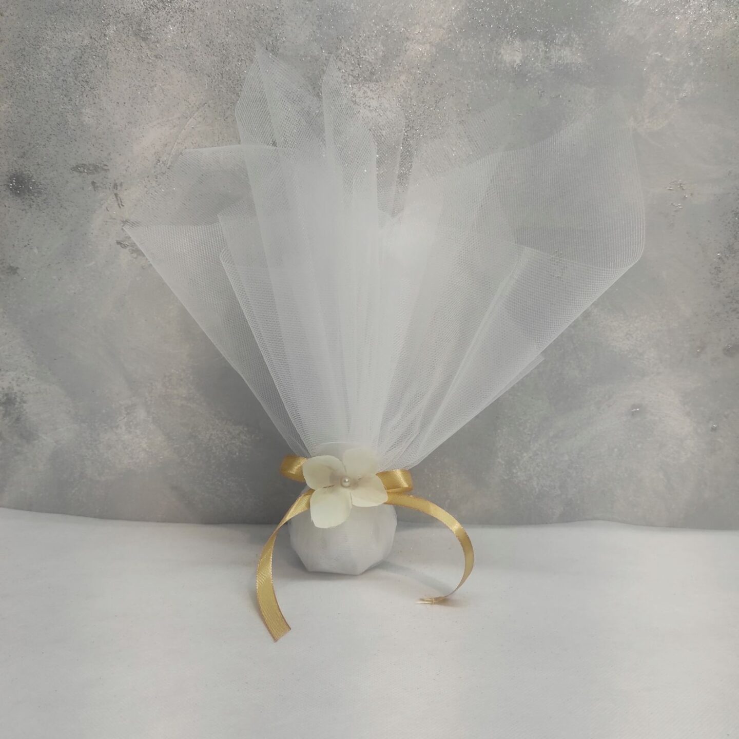 Μπομπονιέρα τούλινη με κορδέλα και λουλούδι