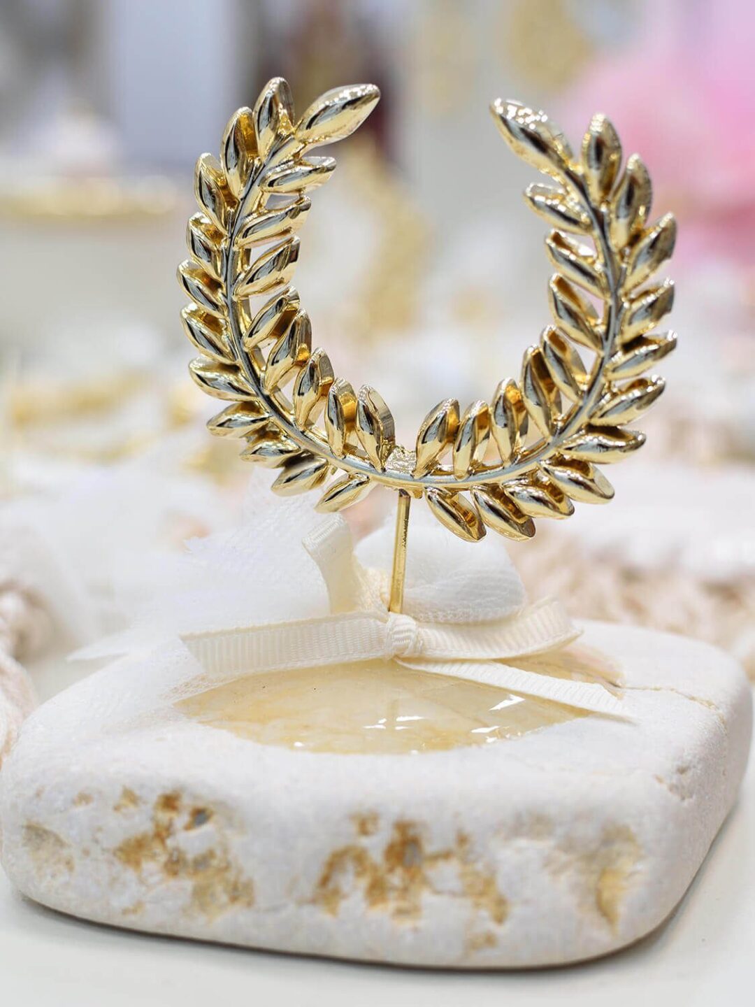 Μπομπονιέρα γάμου με στεφάνι σε πέτρα