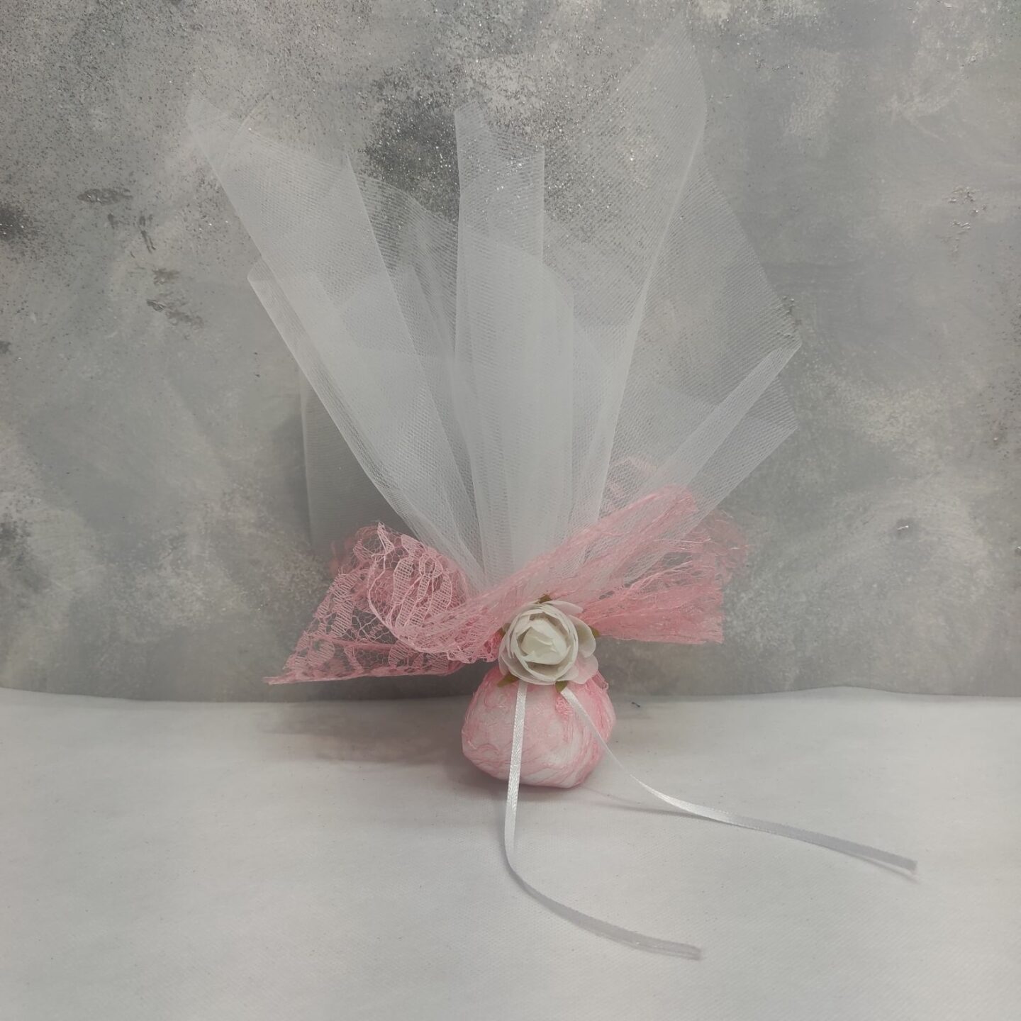 Μπομπονιέρα τούλινη με δαντέλα και λουλούδι