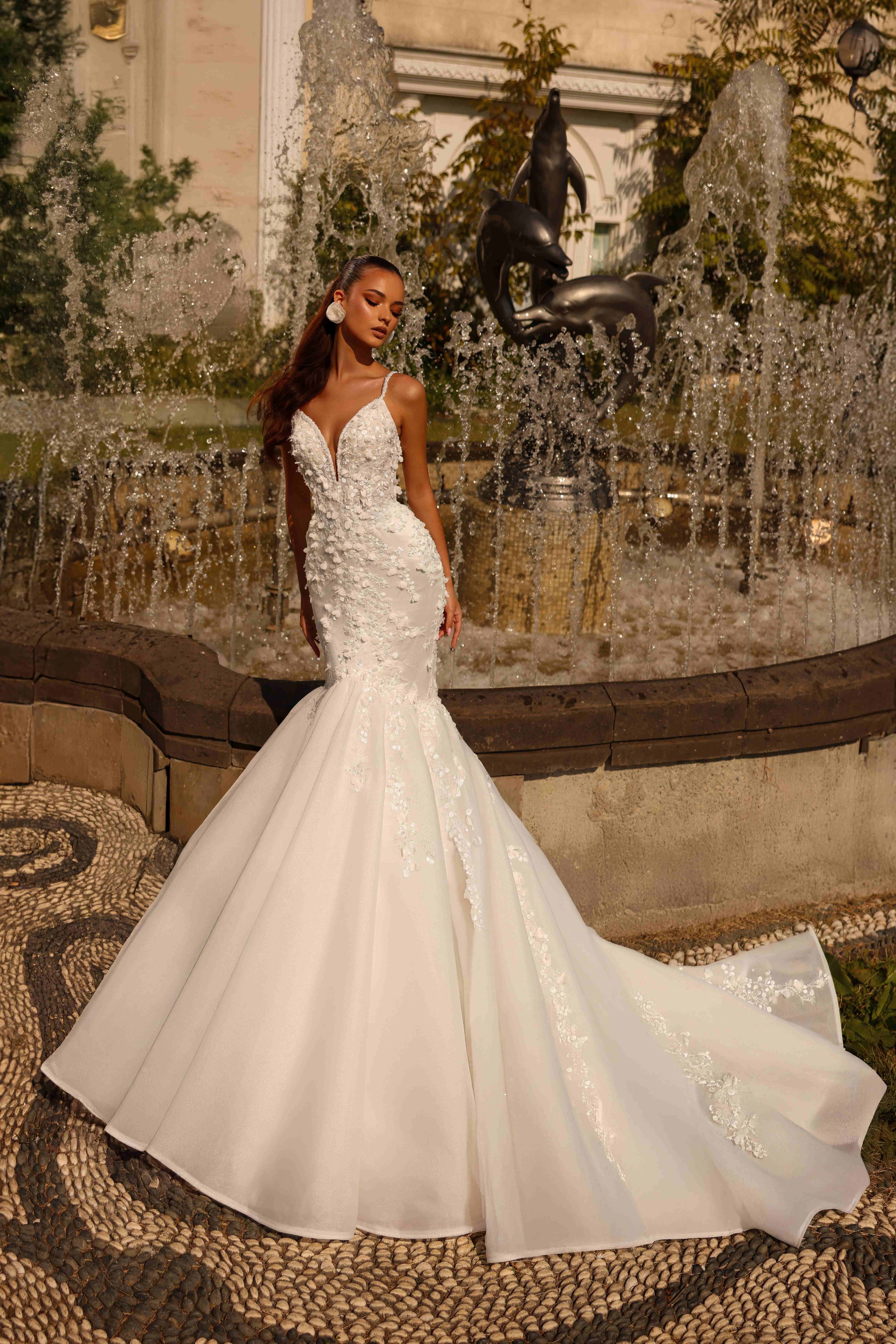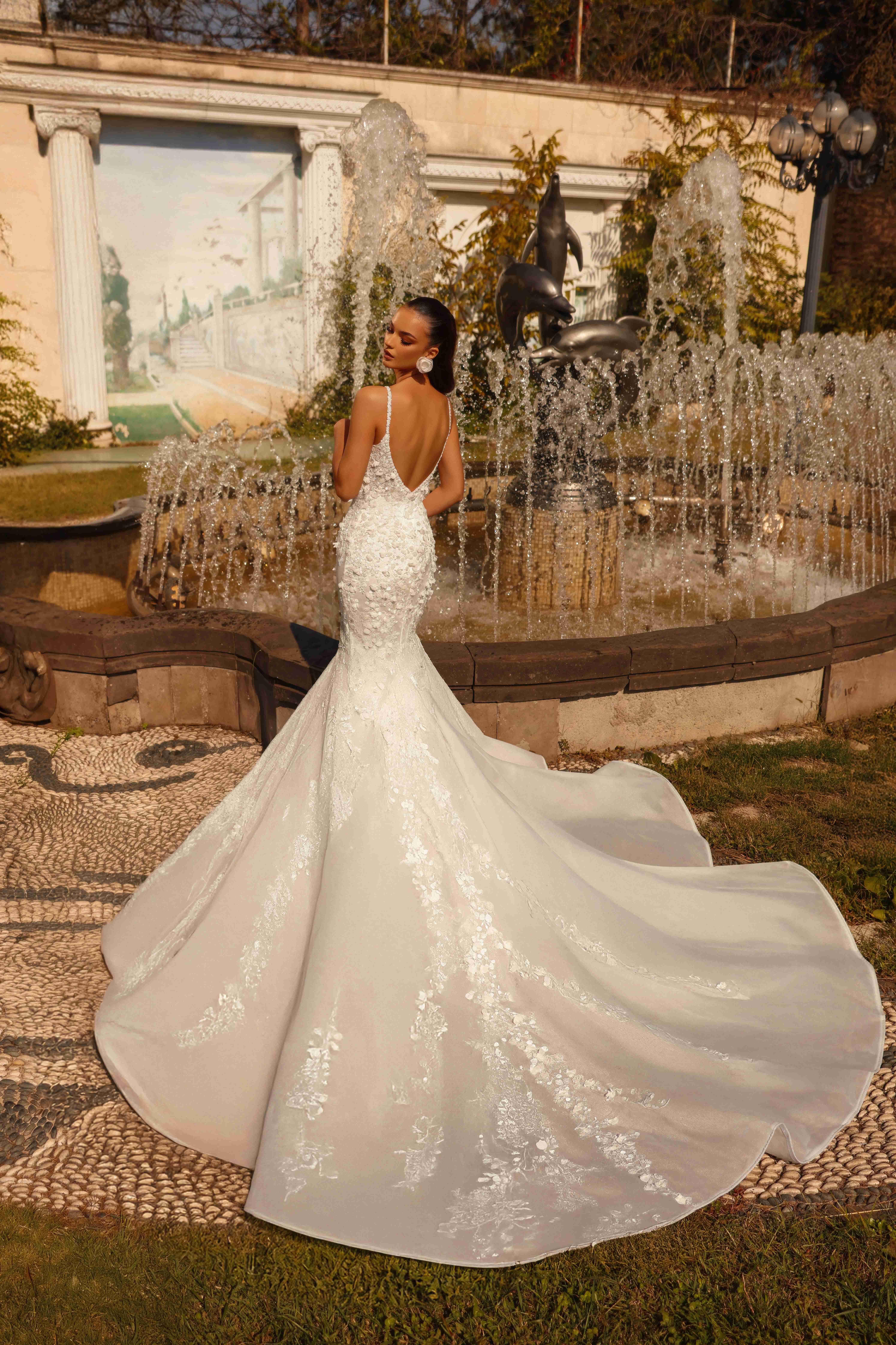 Γοργονέ νυφικό με εντυπωσιακή ουρά