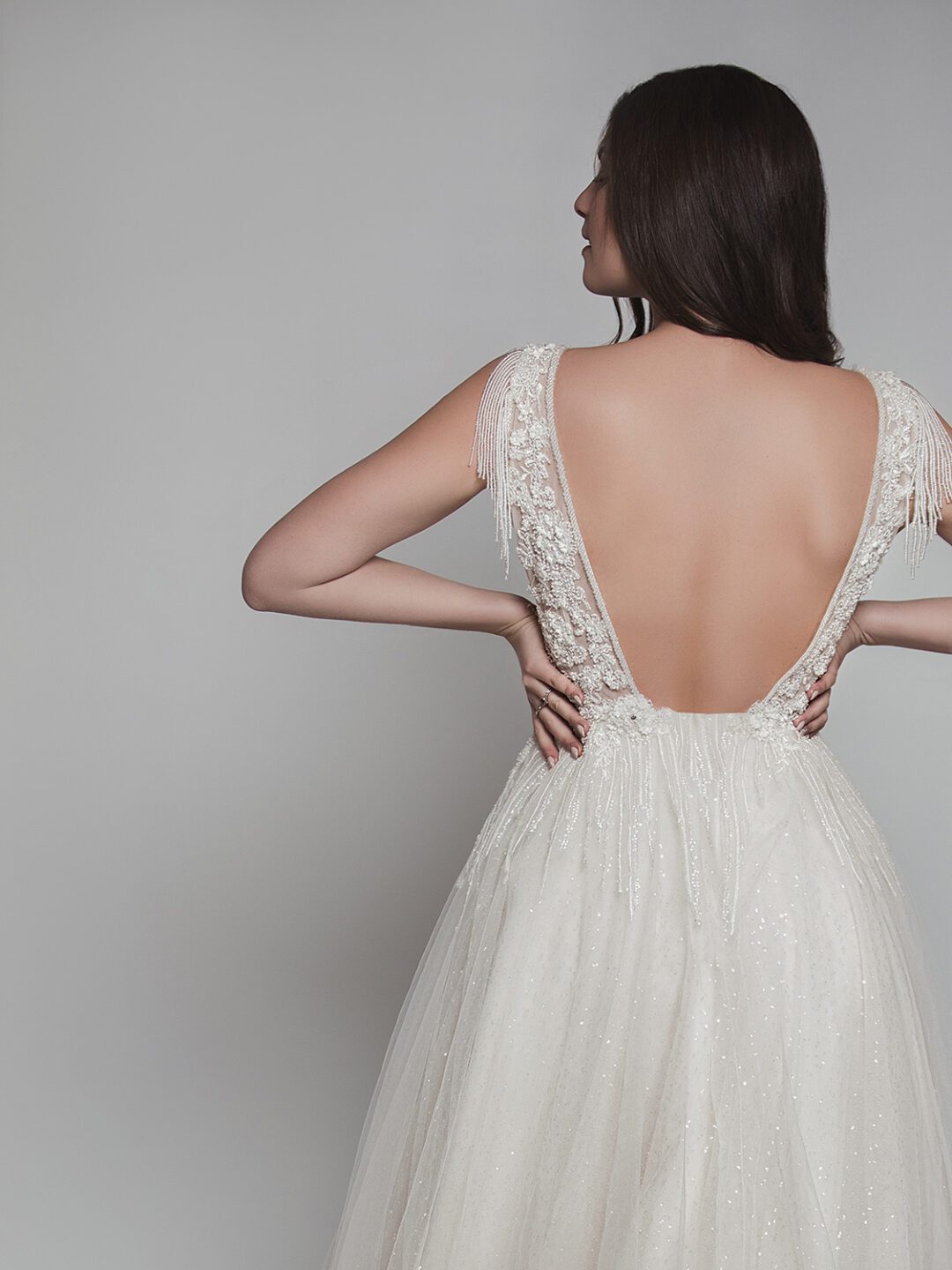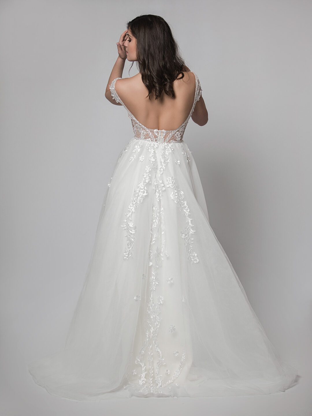 Υπέροχο νυφικό από γαλλικό τούλι σε άλφα γραμμή