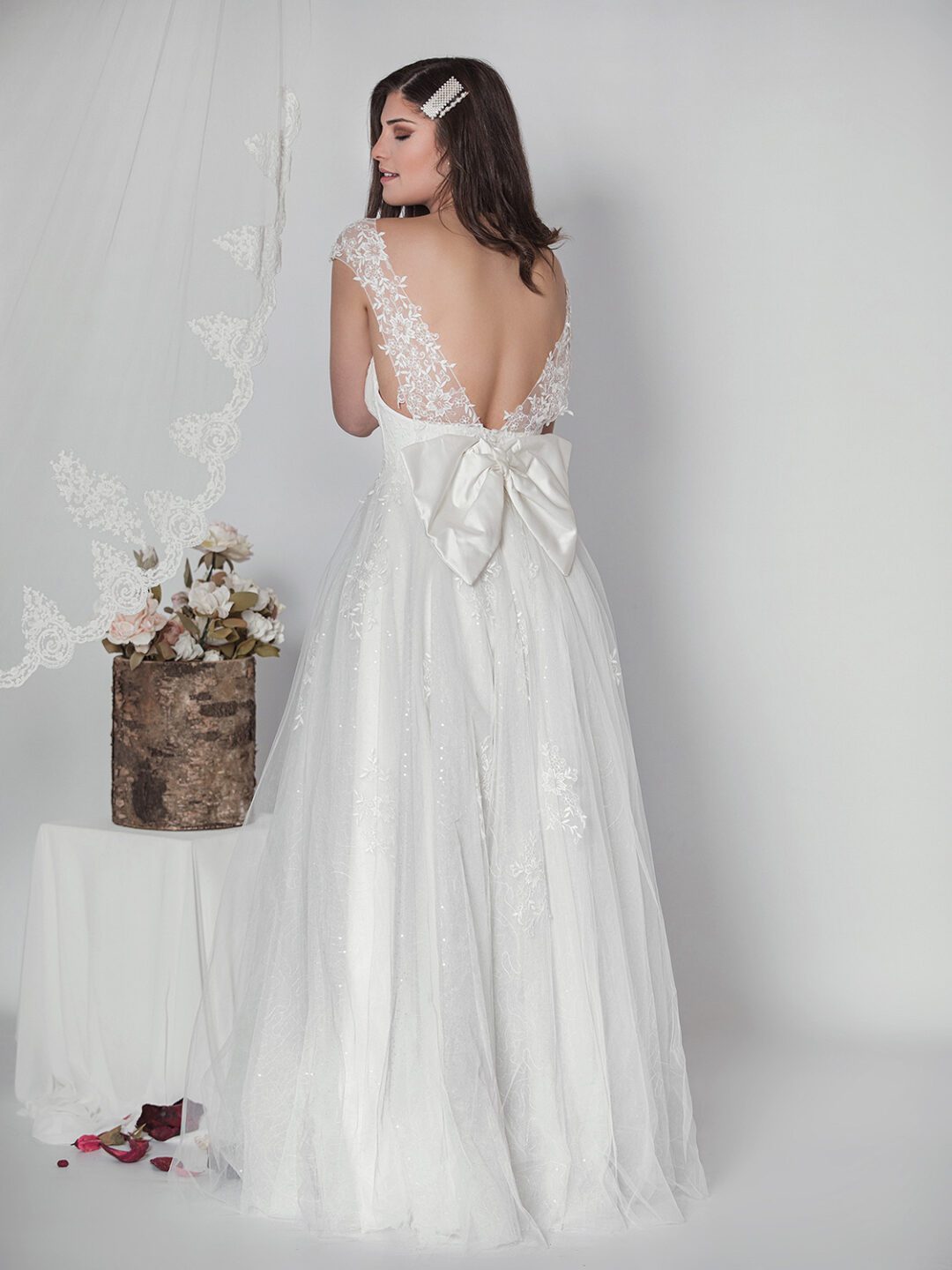 Νυφικό από γαλλικό τούλι σε άλφα γραμμή σε χρώμα off white