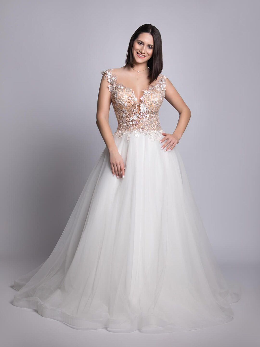 Ρομαντικό νυφικό από γαλλικό τούλι σε άλφα γραμμή