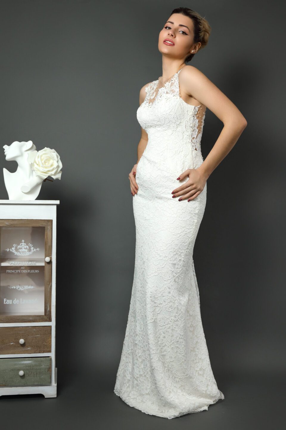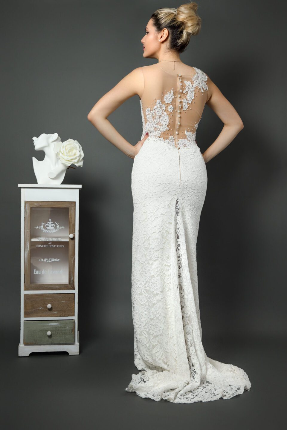 Νυφικό φόρεμα όλο δαντέλα με ανοιχτή πλάτη