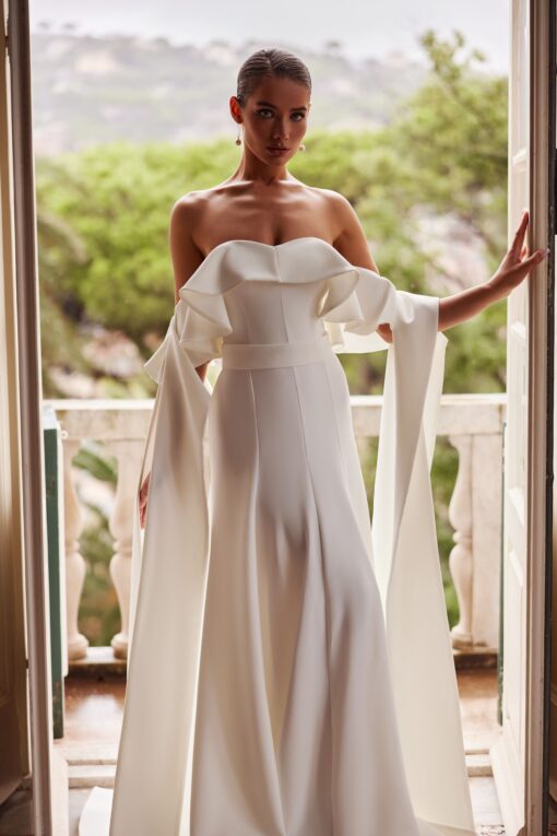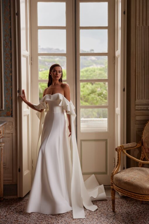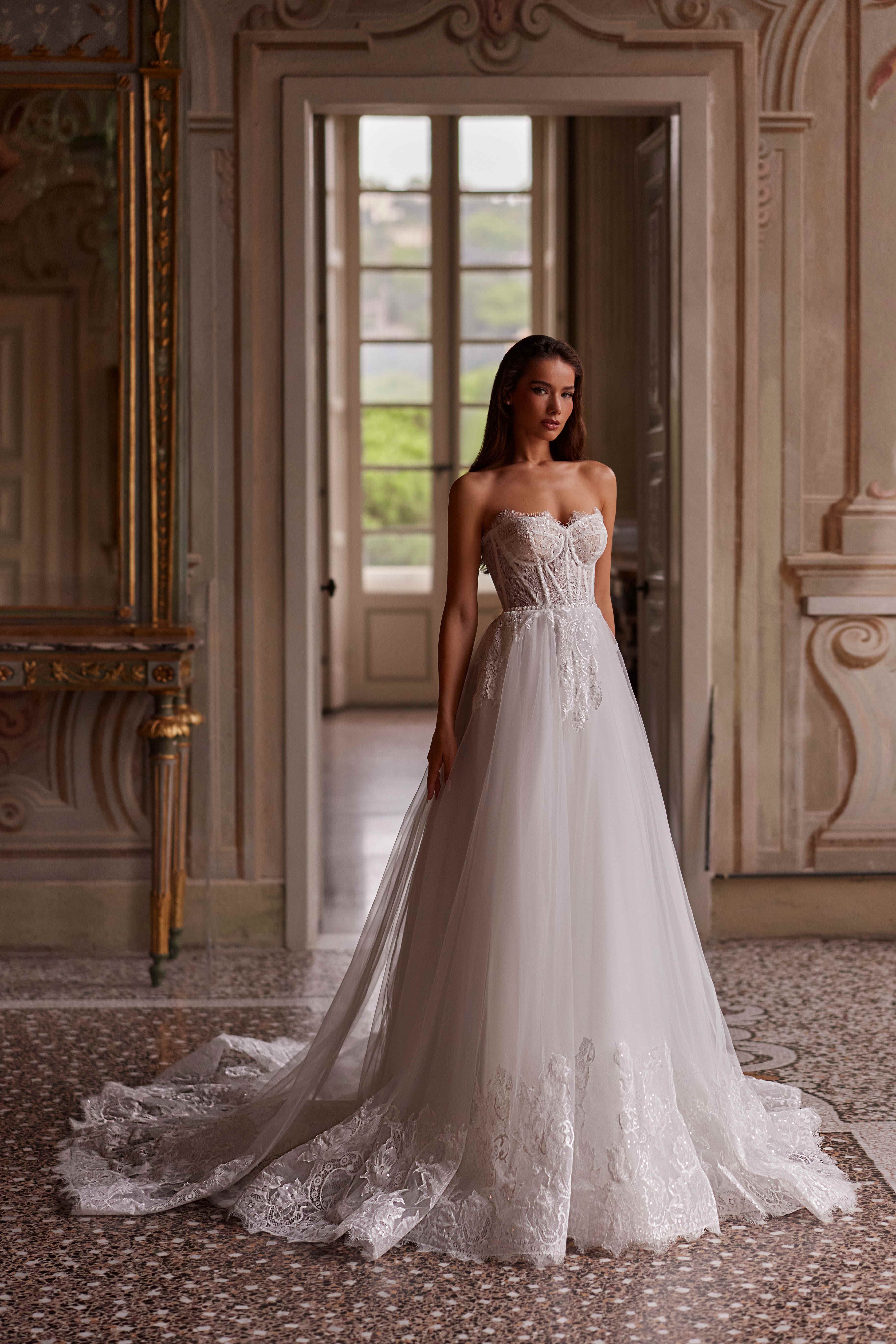 Νυφικό σε Α γραμμή με στράπλες ντεκολτέ