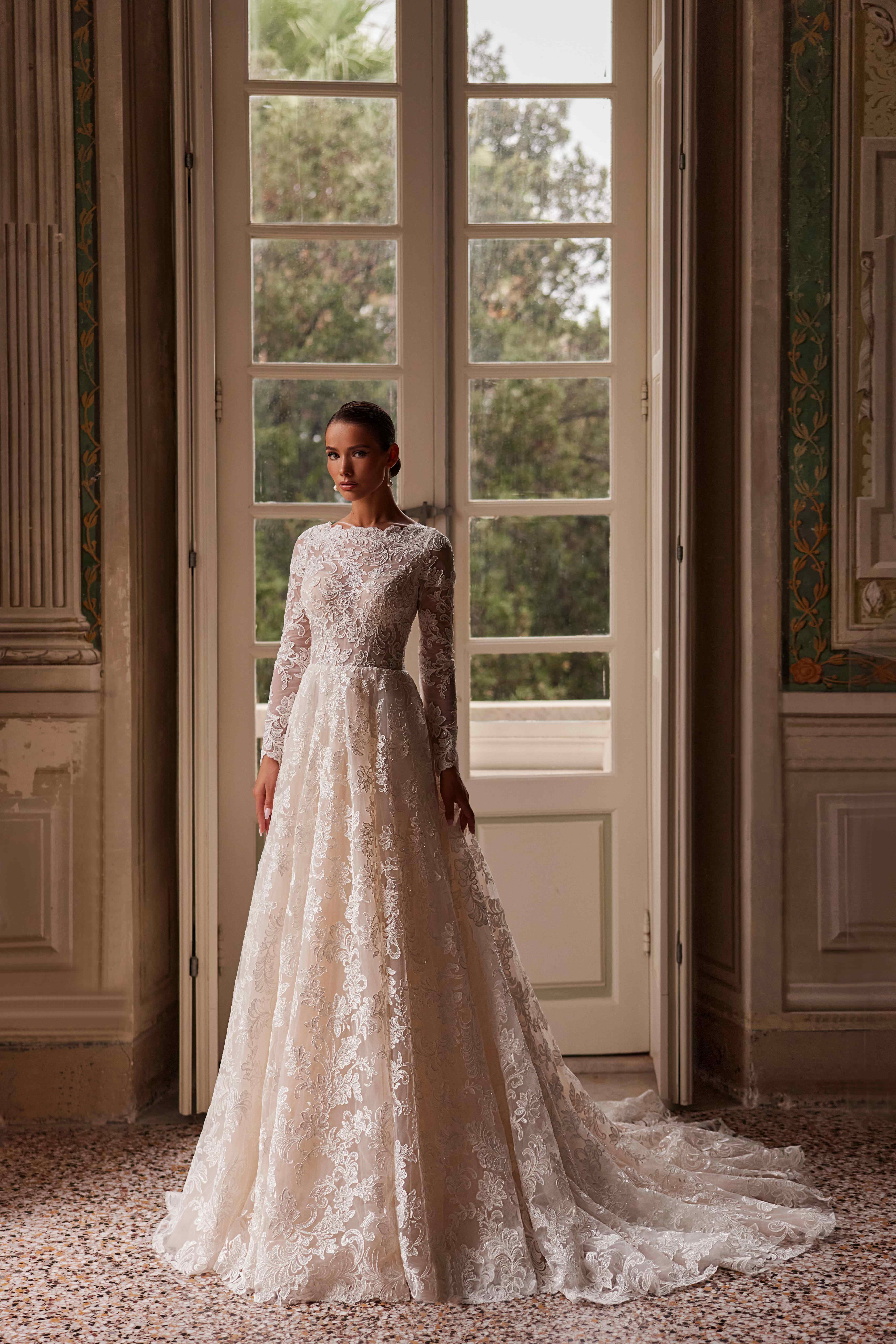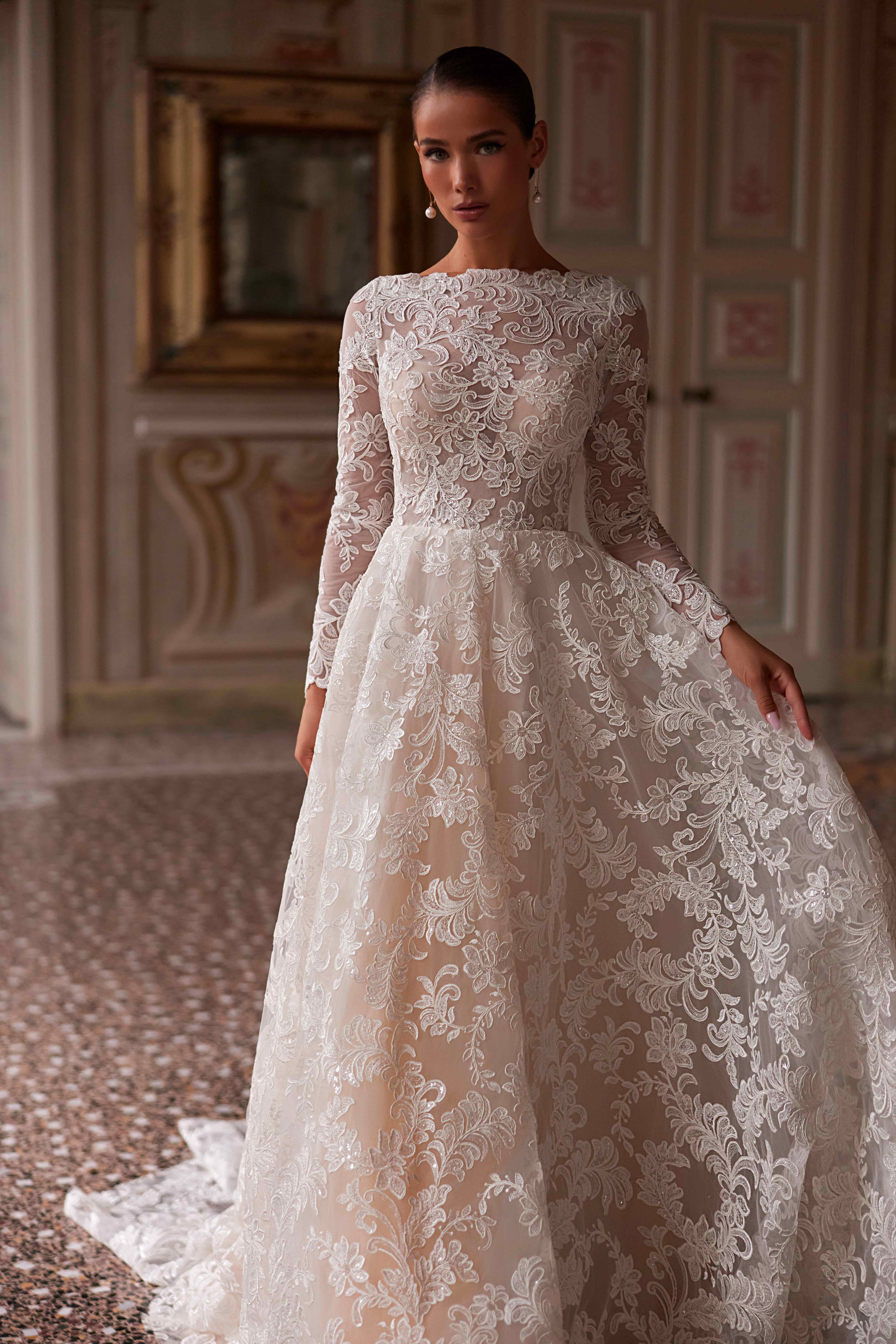 Γοργονέ νυφικό με εντυπωσιακή ουρά