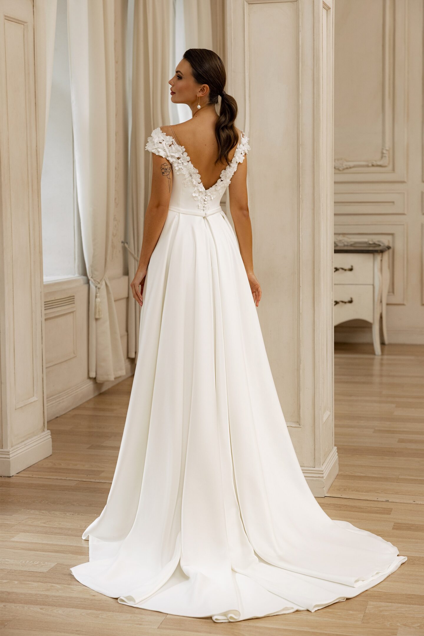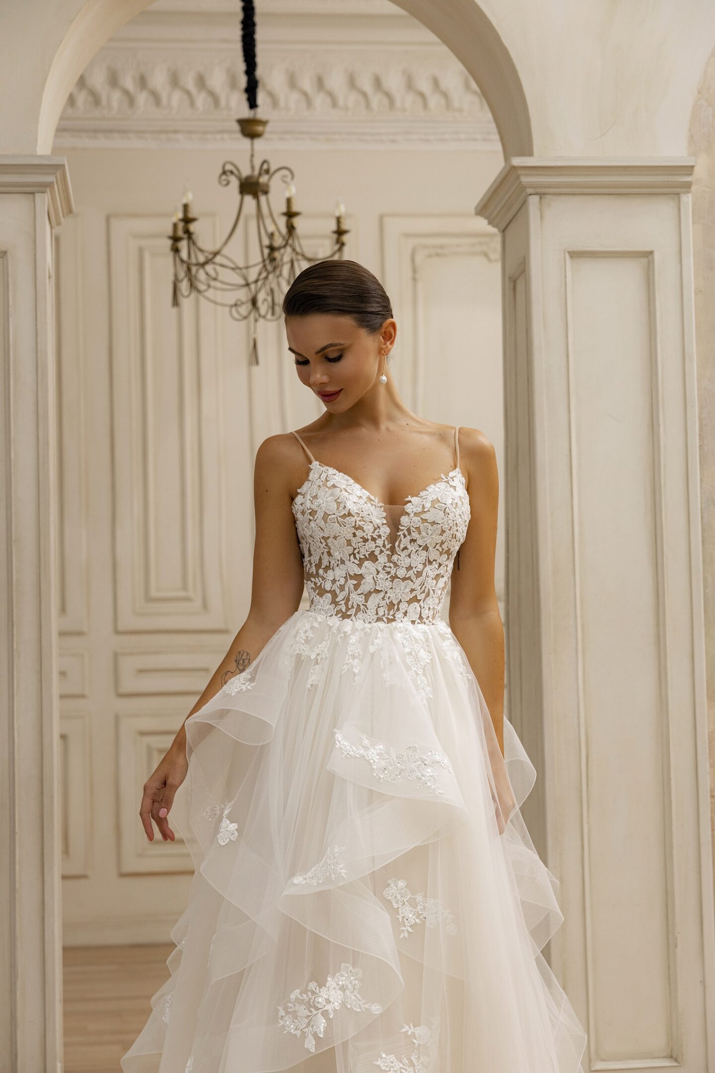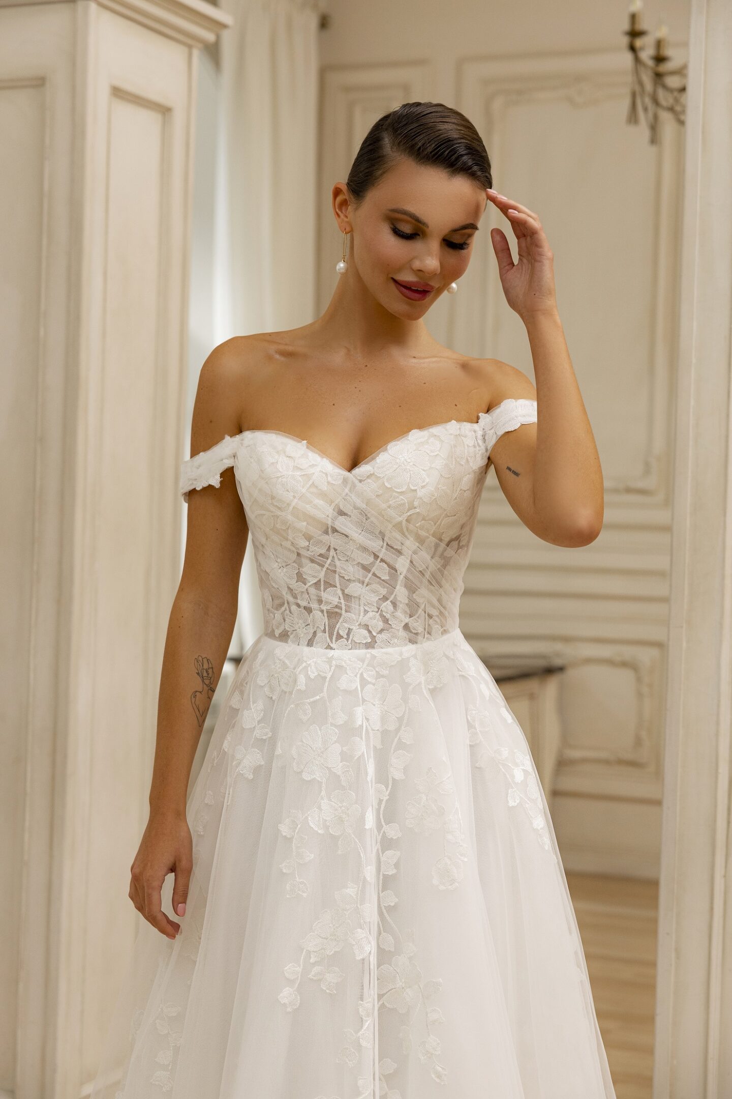 Εντυπωσιακό νυφικό με floral λεπτομέρειες
