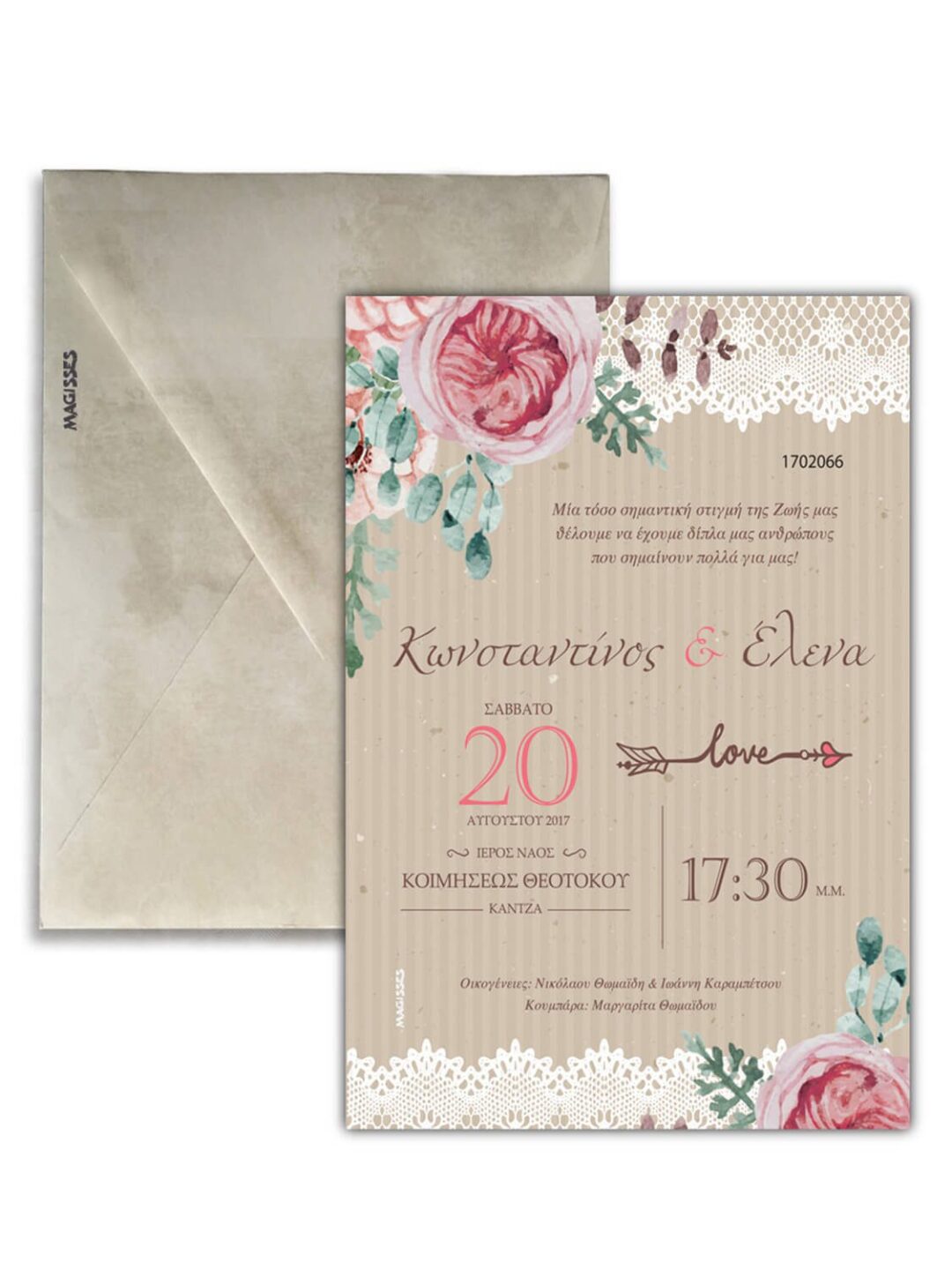 Προσκλητήριο γάμου κατακόρυφο σε καφέ/μπέζ χαρτόνι vintage