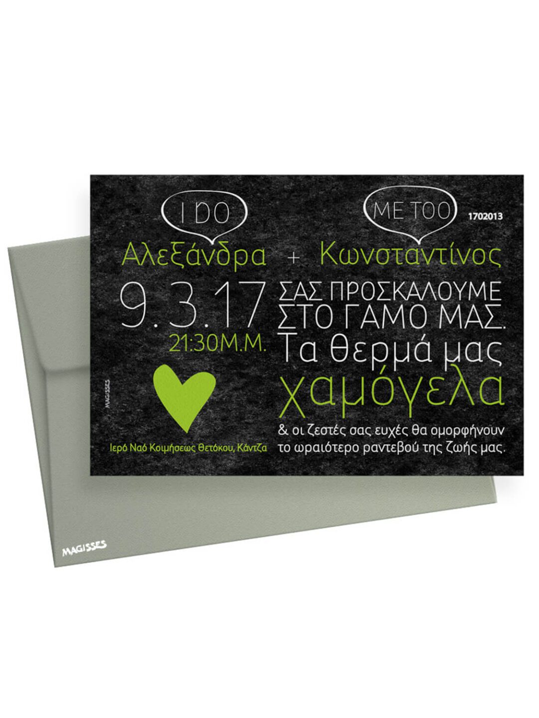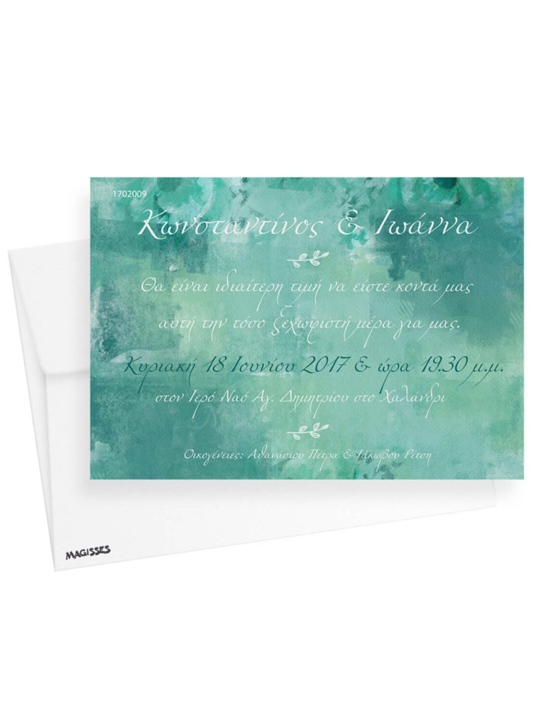 Προσκλητήριο γάμου τετράγωνο διπλής όψης, σε πράσινο γυαλιστερό χαρτόνι