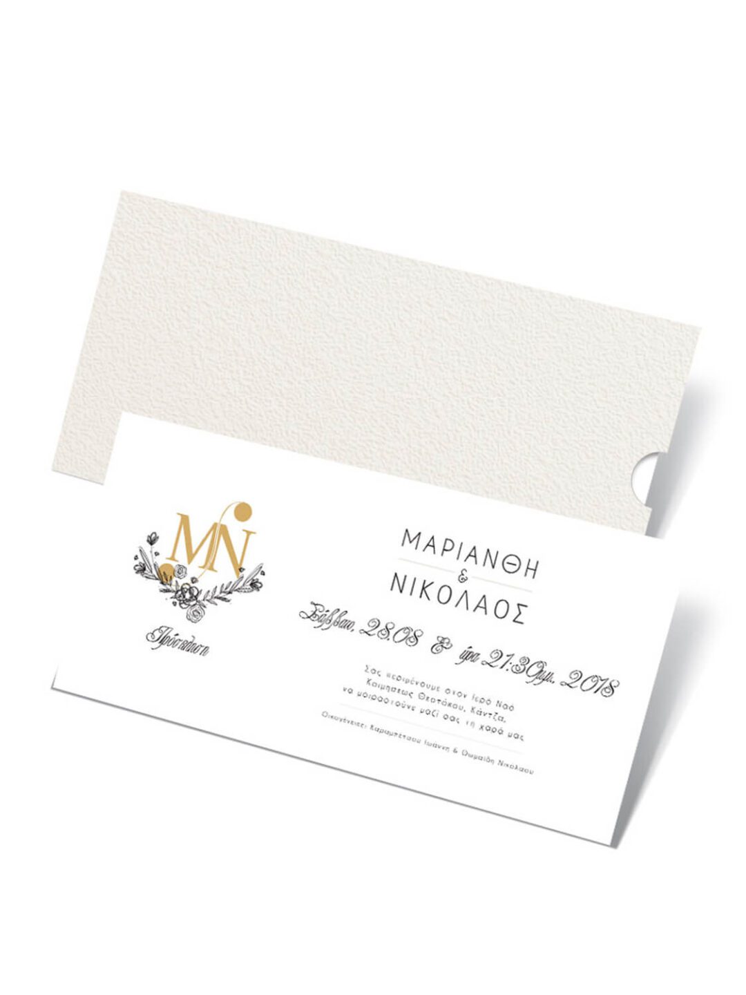 Προσκλητήριο γάμου κατακόρυφο από μεταλιζέ χαρτόνι
