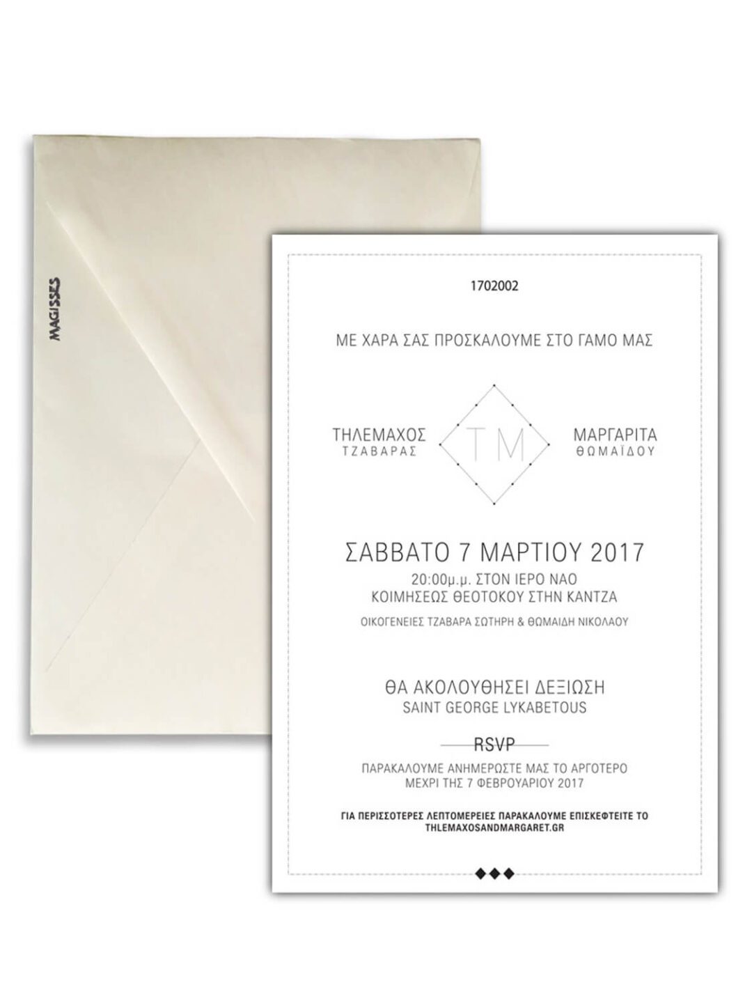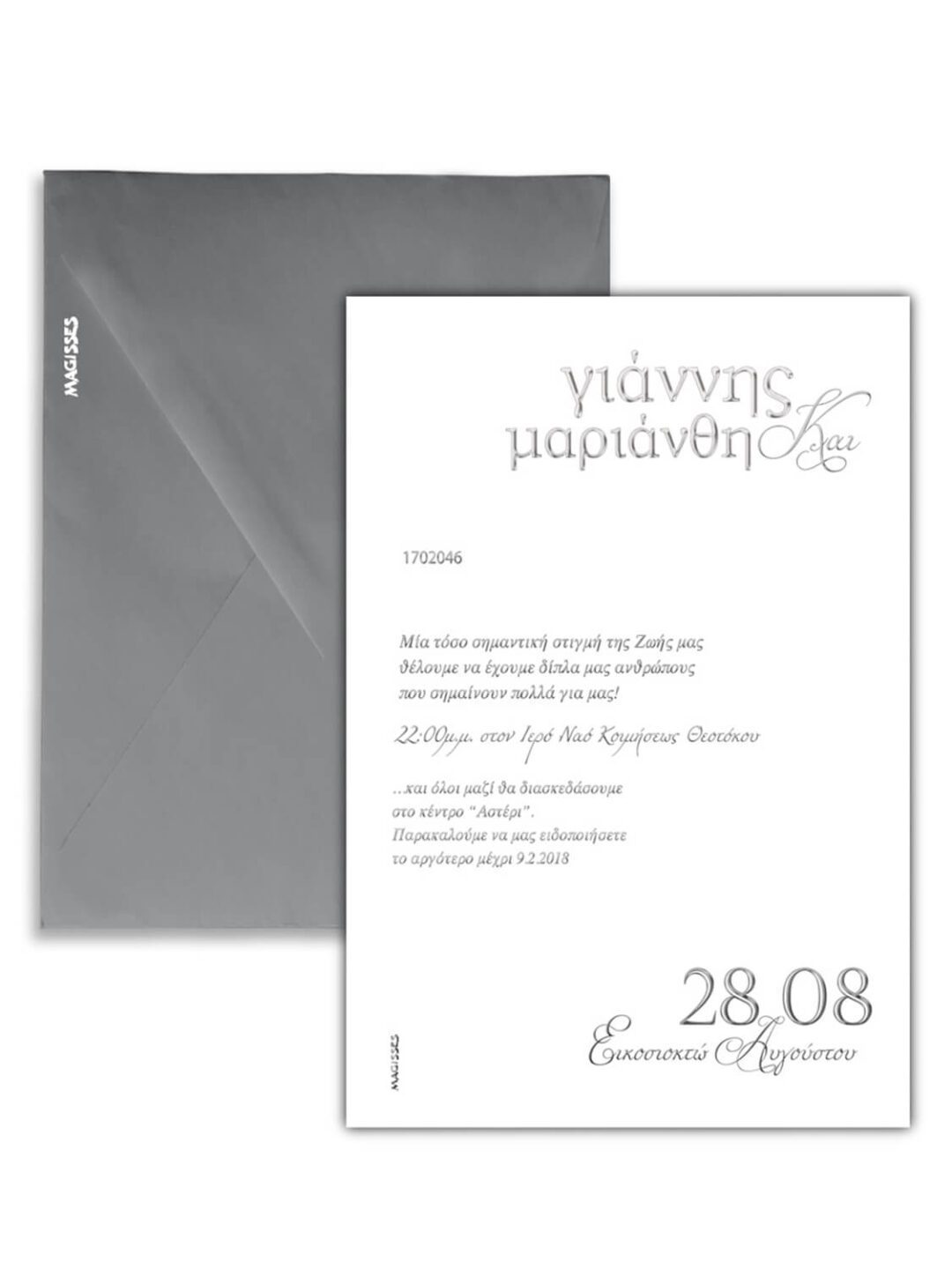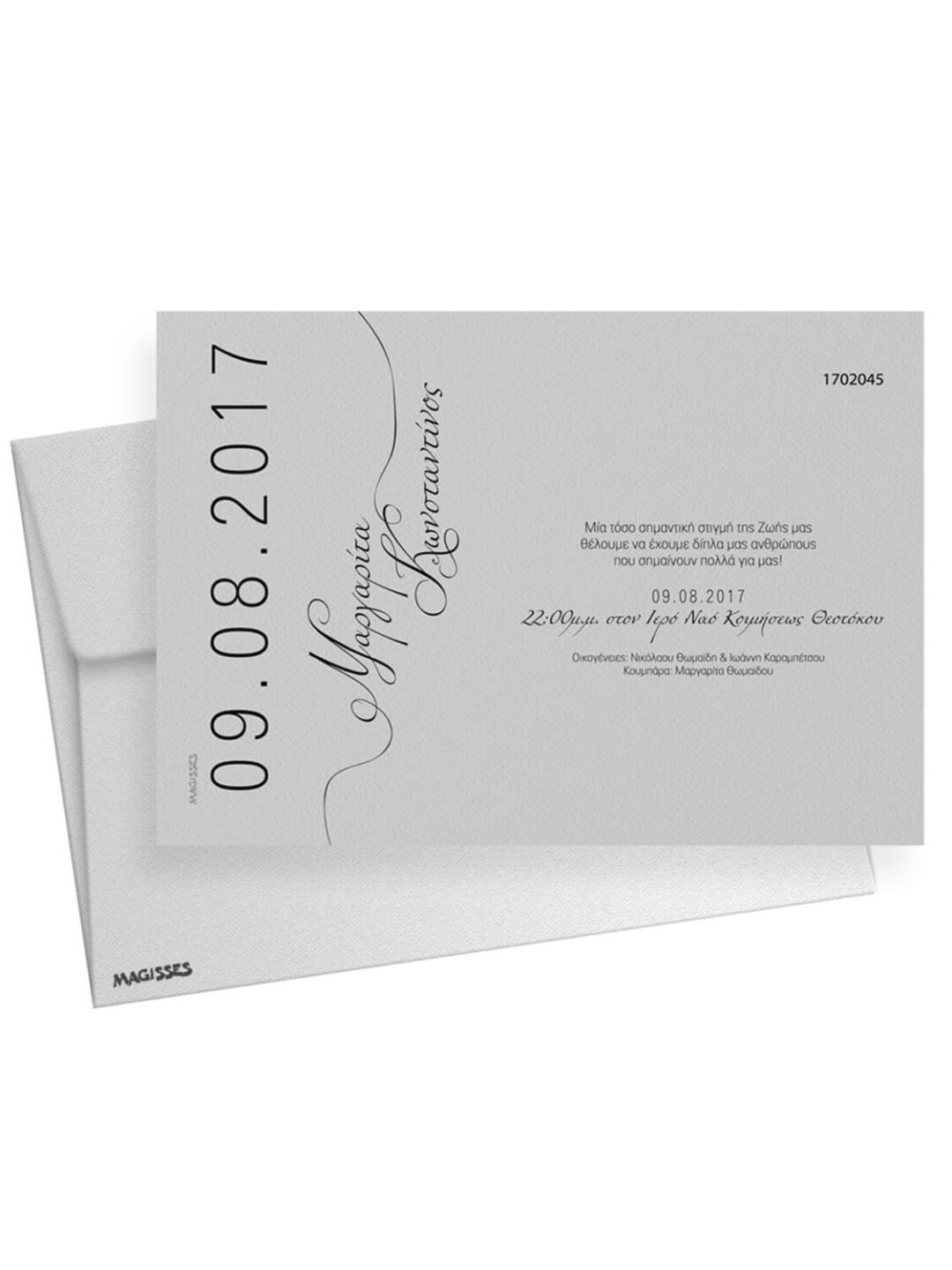Προσκλητήριο γάμου τετράγωνο σε απαλό γκρι μεταλλιζέ χαρτόνι με μοντέρνα γραφή