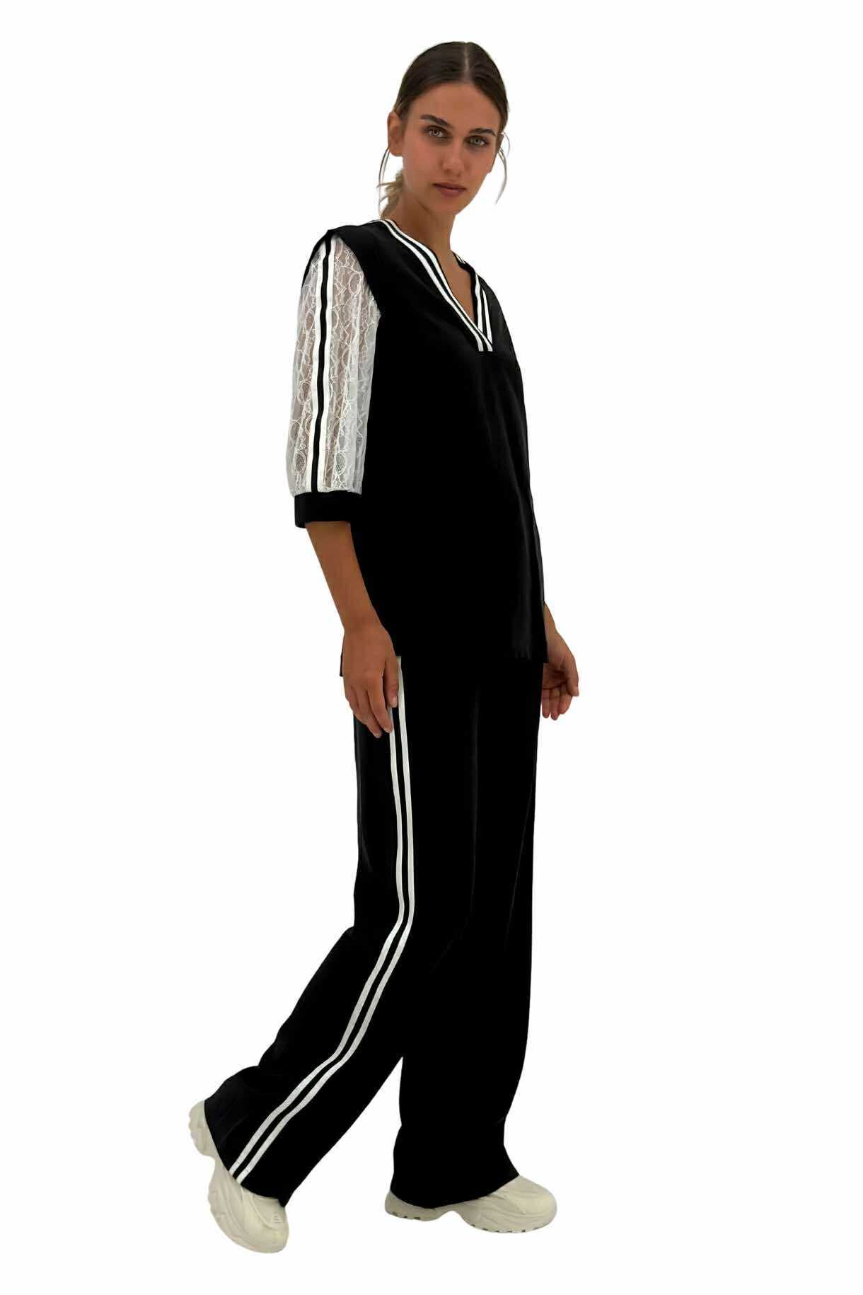 Μαύρο γυναικείο παντελόνι με άσπρη ρίγα στο πλάι