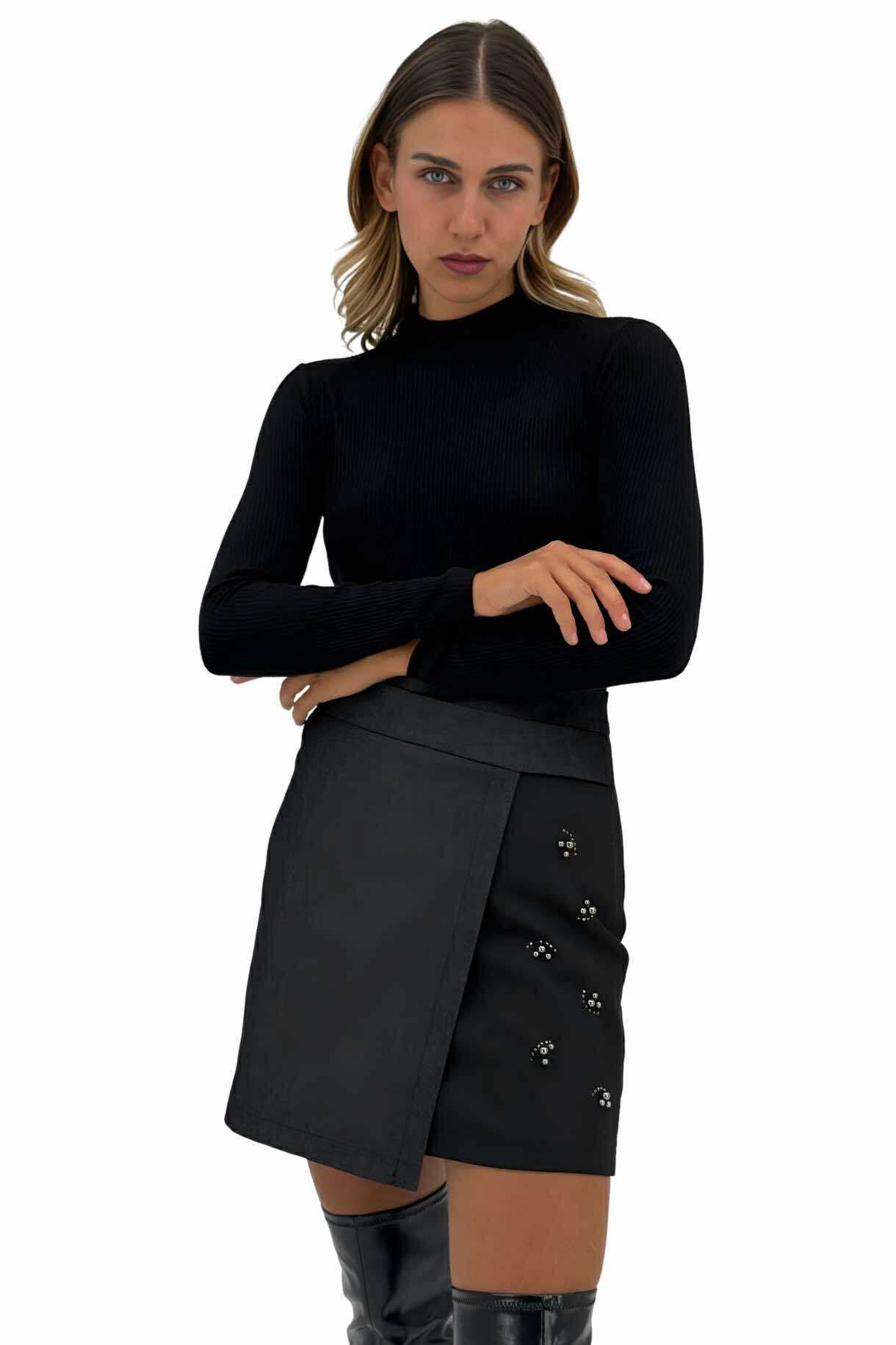 Μαύρη κοντή φούστα με κέντημα και strass