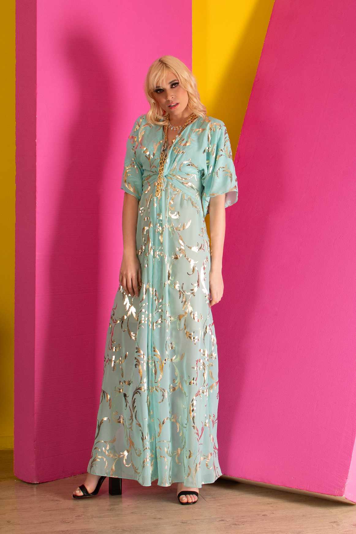 Maxi φόρεμα με χρυσά σχέδια