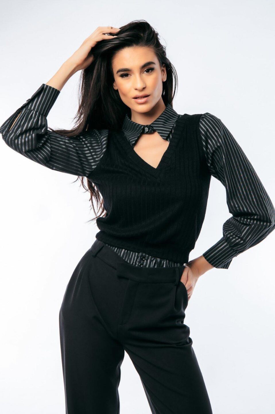 Μπλούζα με πουκάμισο και γιλέκο