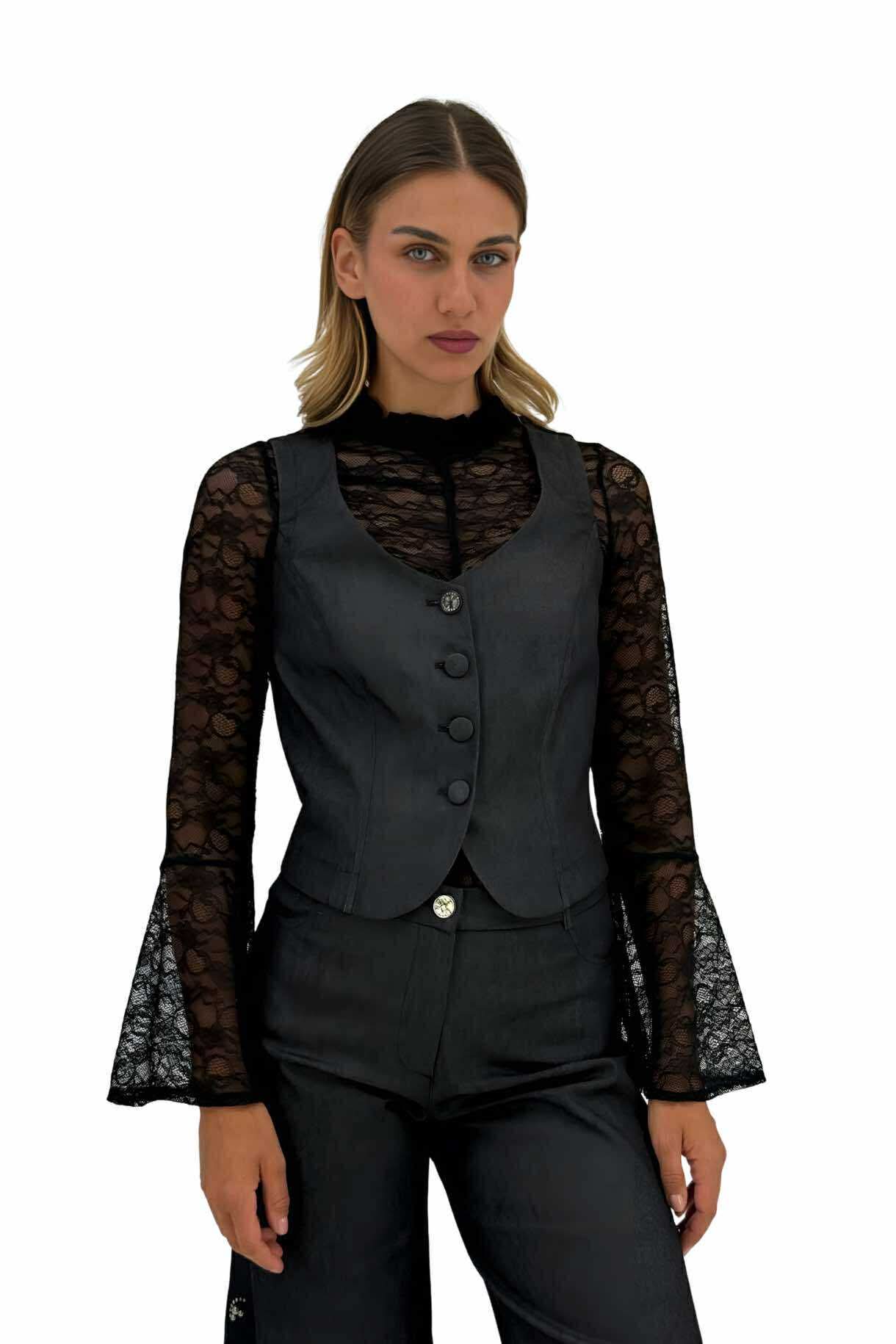 Μαύρο γυναικείο τζιν γιλέκο με κουμπιά