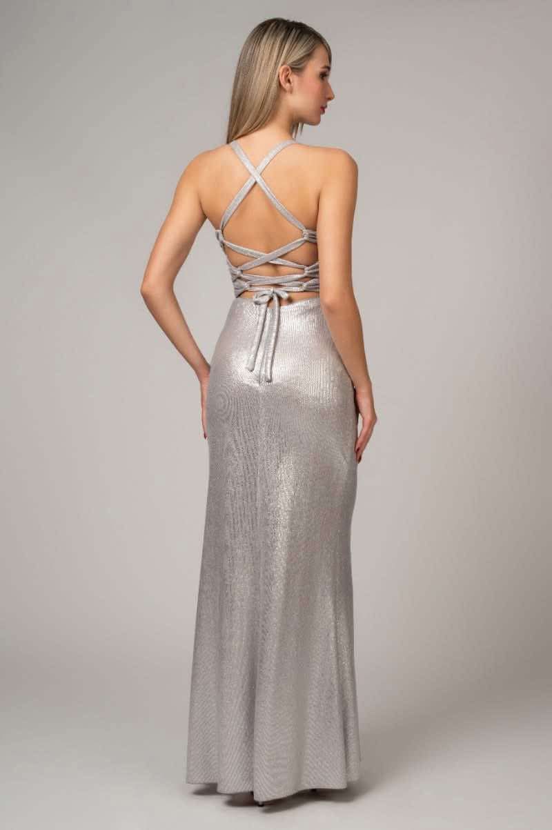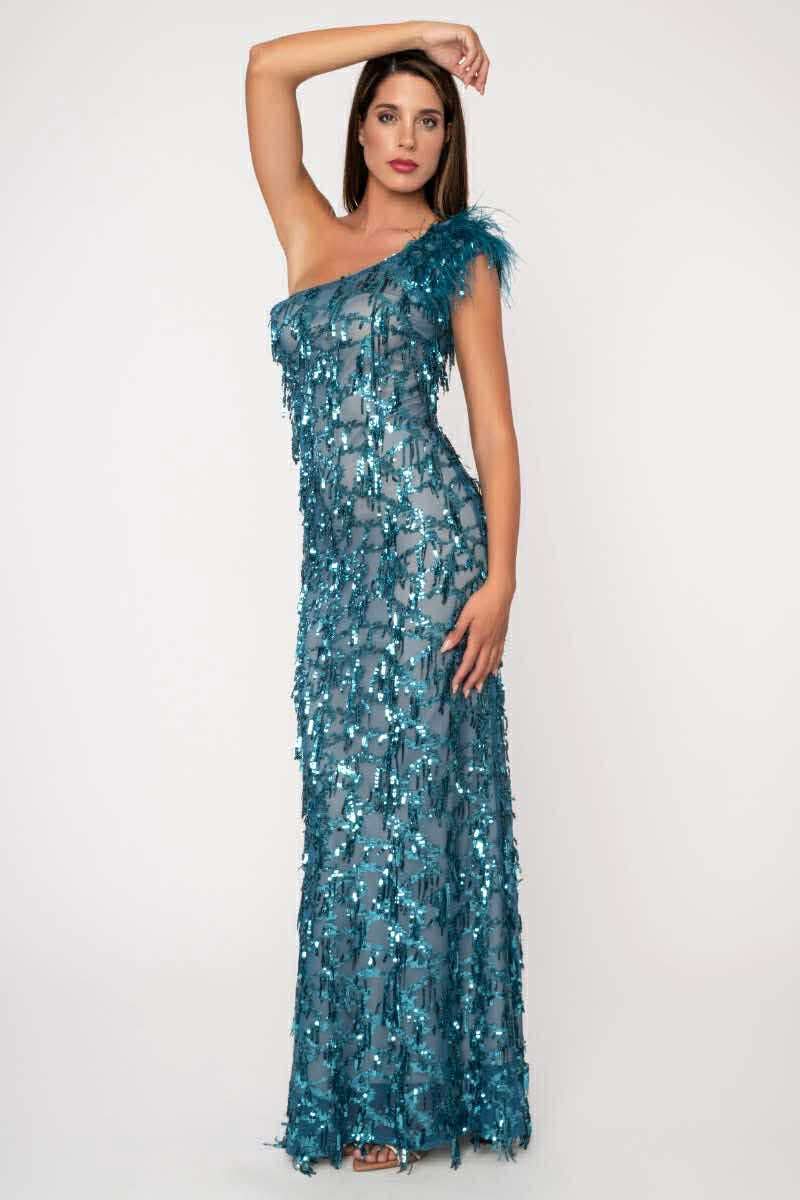 Maxi φόρεμα παγιέτα με ανοιχτούς ώμους