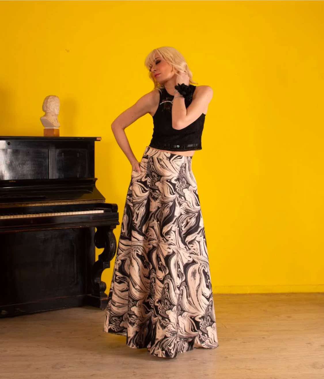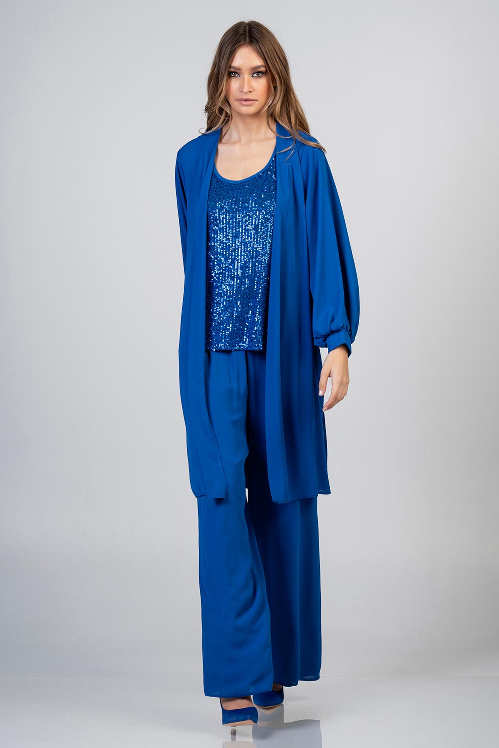 Φούστα σατέν με μπλούζα από παγιέτα