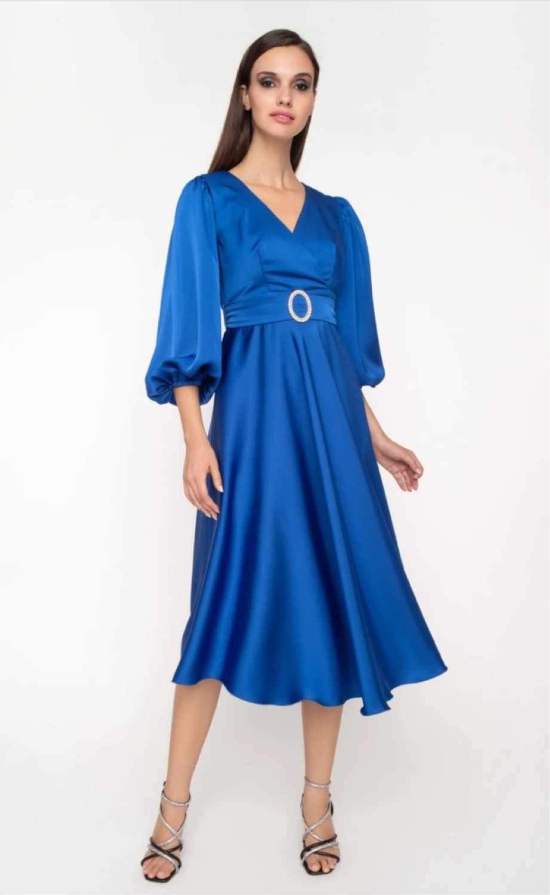 Midi φόρεμα σε άλφα γραμμή σε μπλε