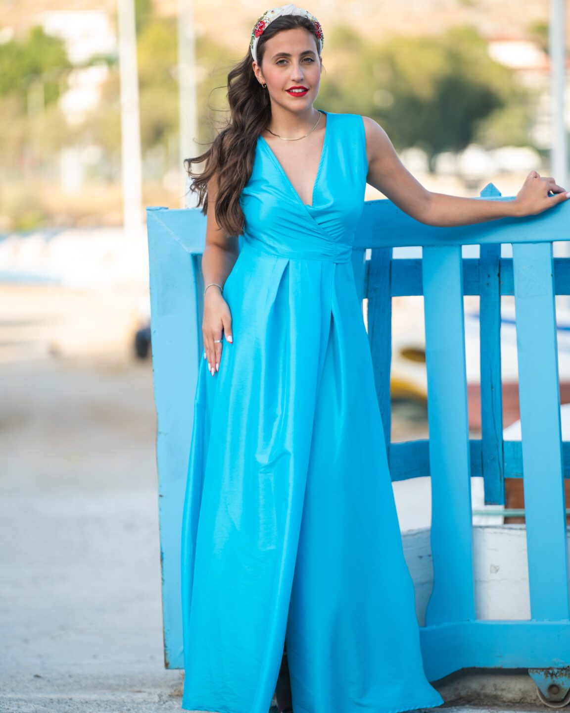 Maxi κρουαζέ φόρεμα σε τιρκουάζ