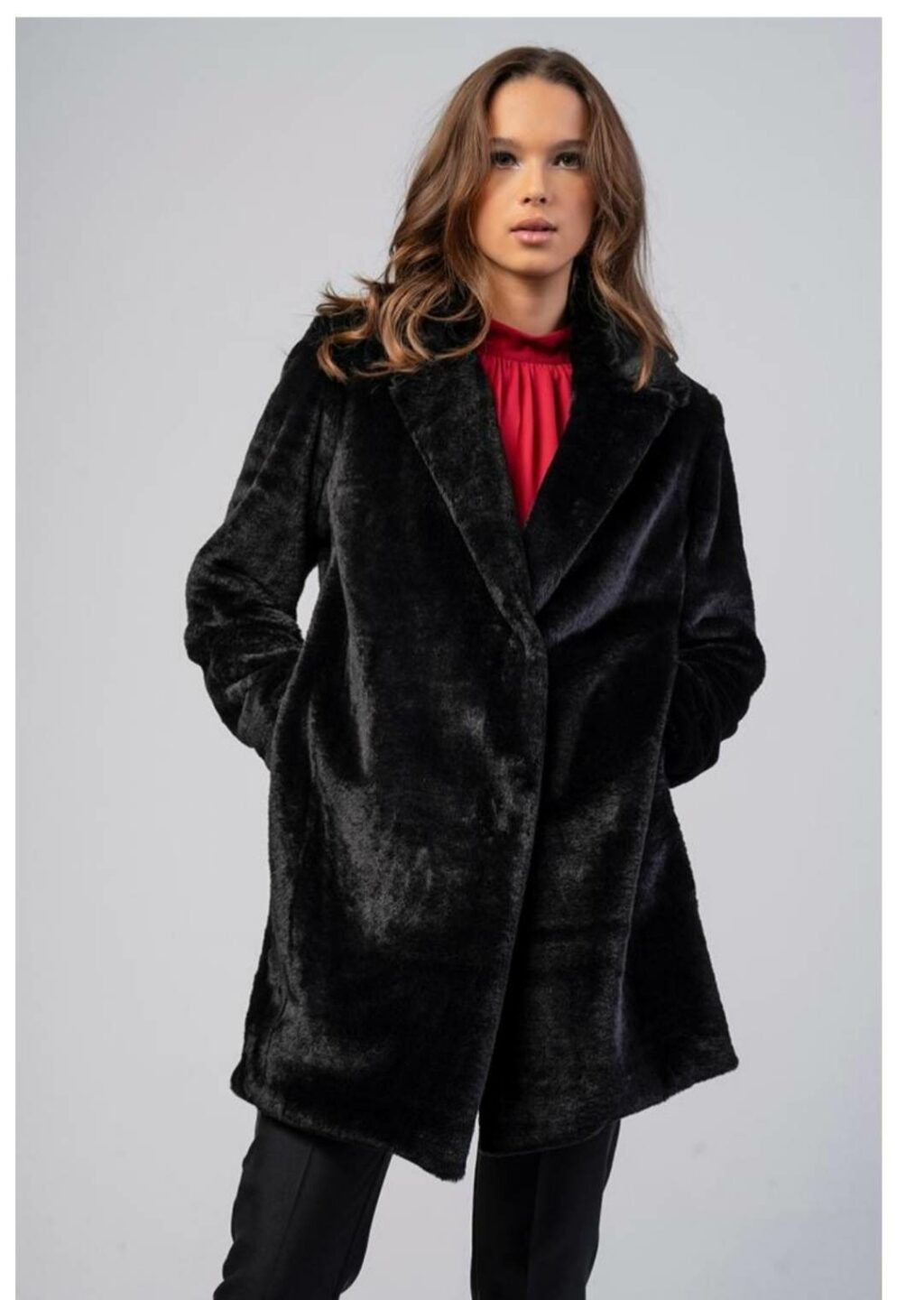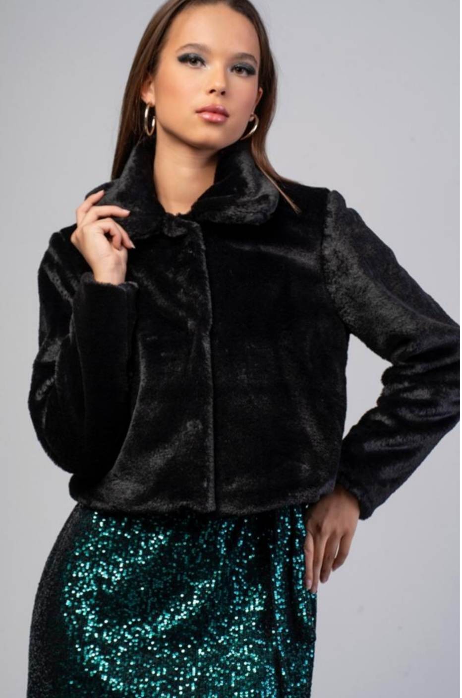 Κοντό γούνινο παλτό σε μαύρο και λευκό