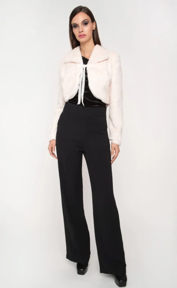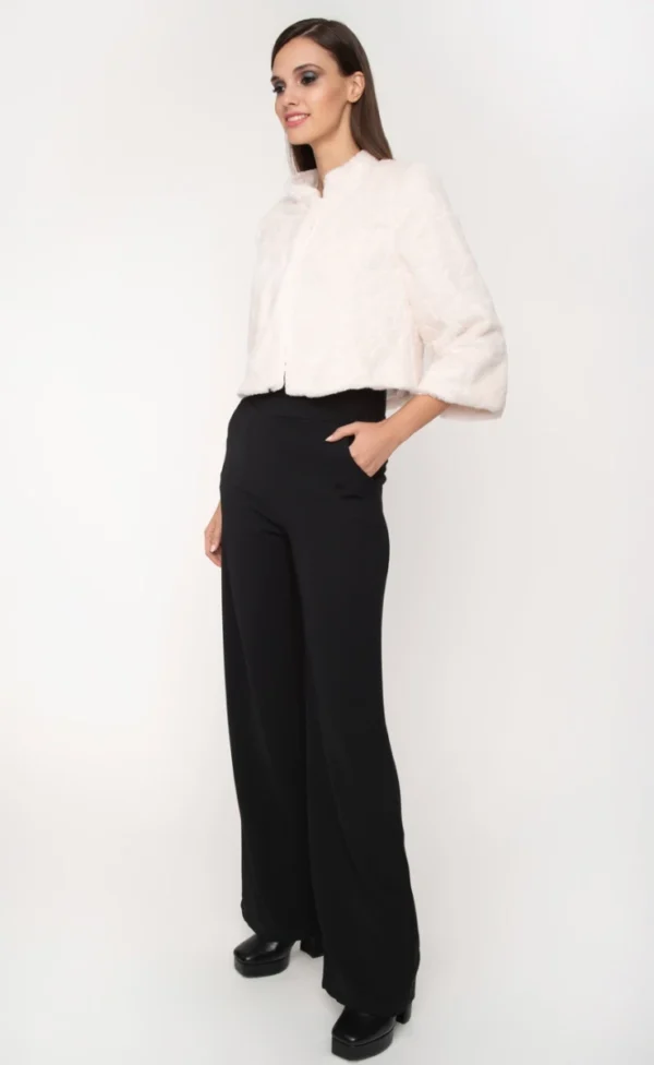 Κοντό γούνινο παλτό σε μαύρο και λευκό
