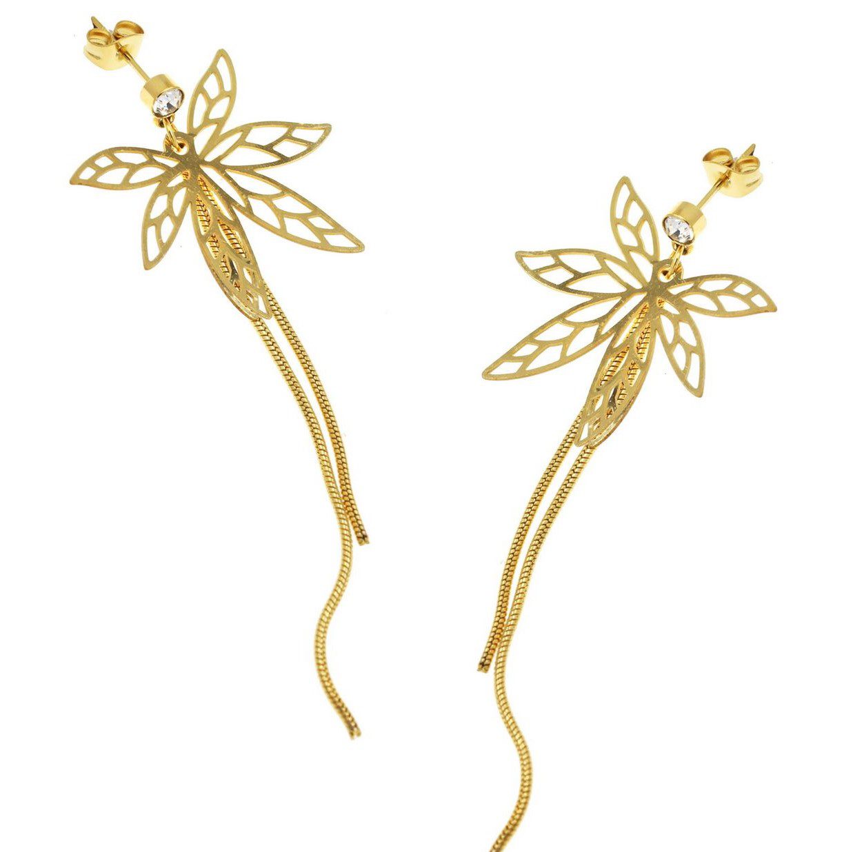 Επιχρυσωμένα κρεμαστά σκουλαρίκια από ατσάλι με αλυσίδες