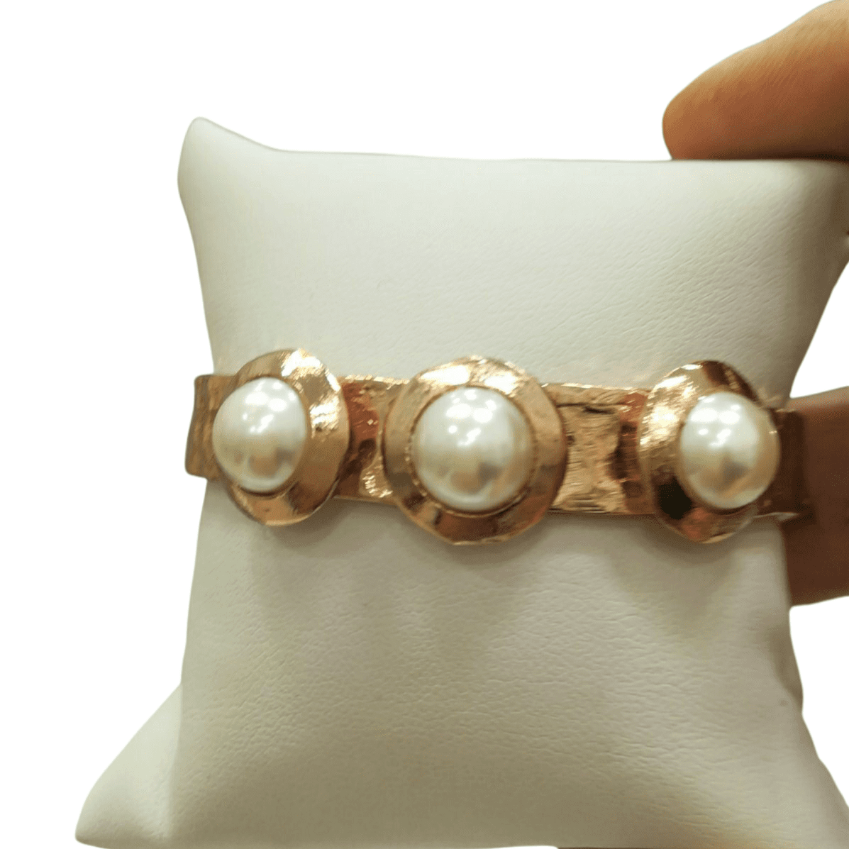 Επίχρυσο βραχιόλι σφυρήλατο με πέρλες