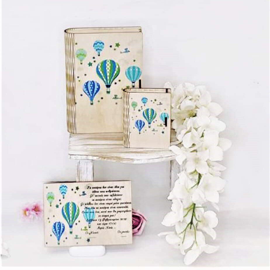 Πλήρες σετ βάπτισης με θέμα το Αερόστατο_Θεματική βάπτιση