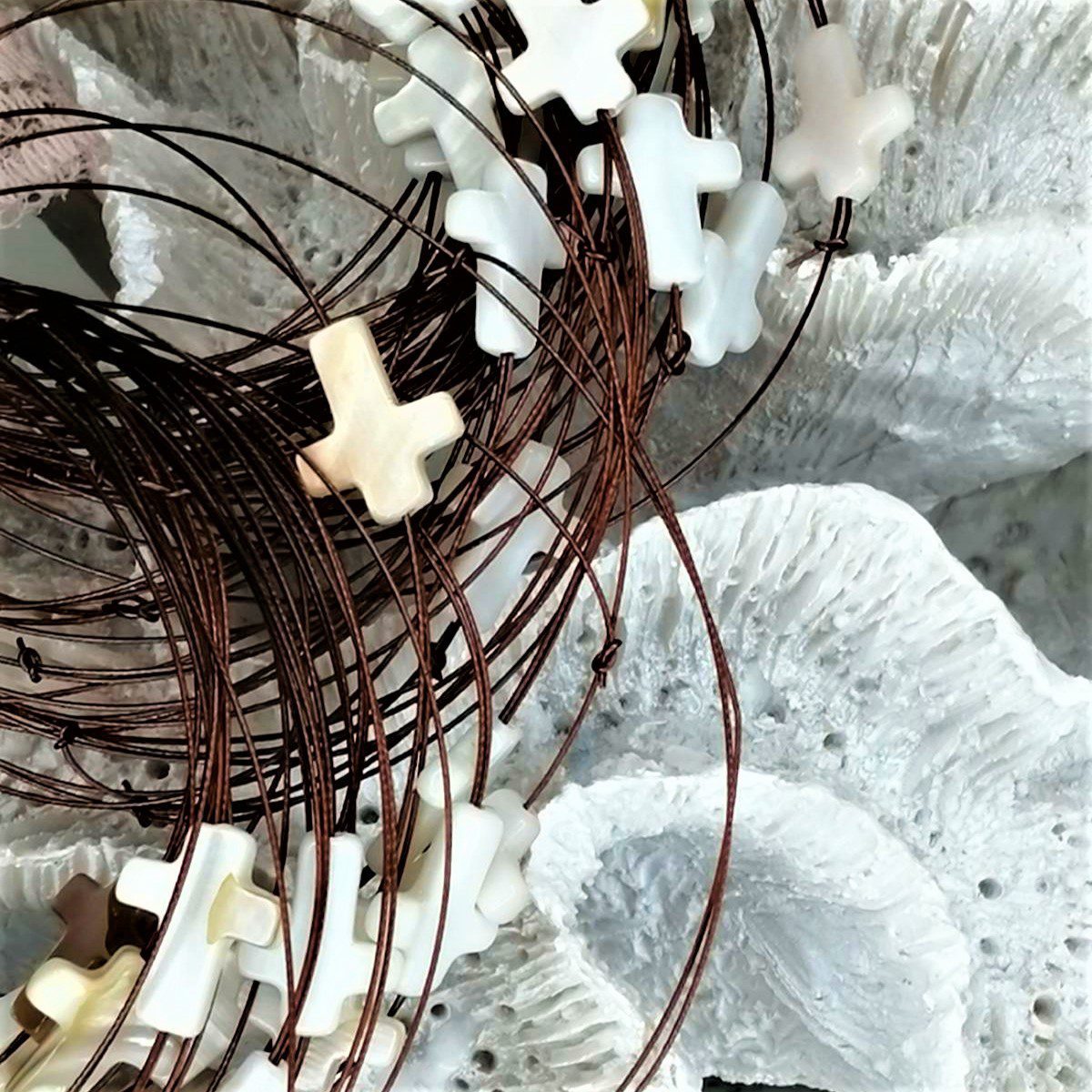 Μαρτυρικά βραχιολάκια για βάπτιση με διάτρητο σταυρουδάκι και κούμπωμα