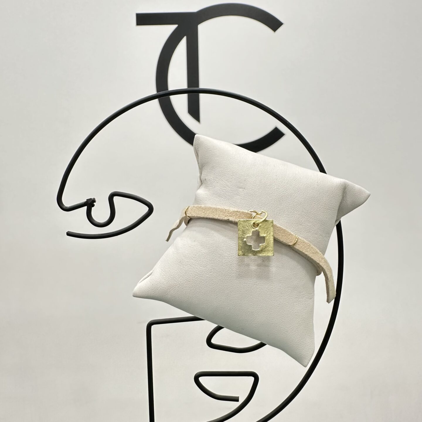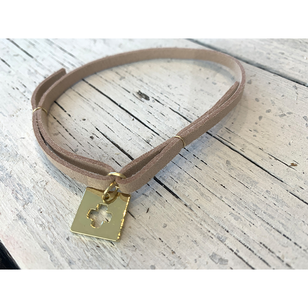 Μαρτυρικά βραχιολάκια για βάπτιση μπεζ σουέτ με χρυσό σταυρό