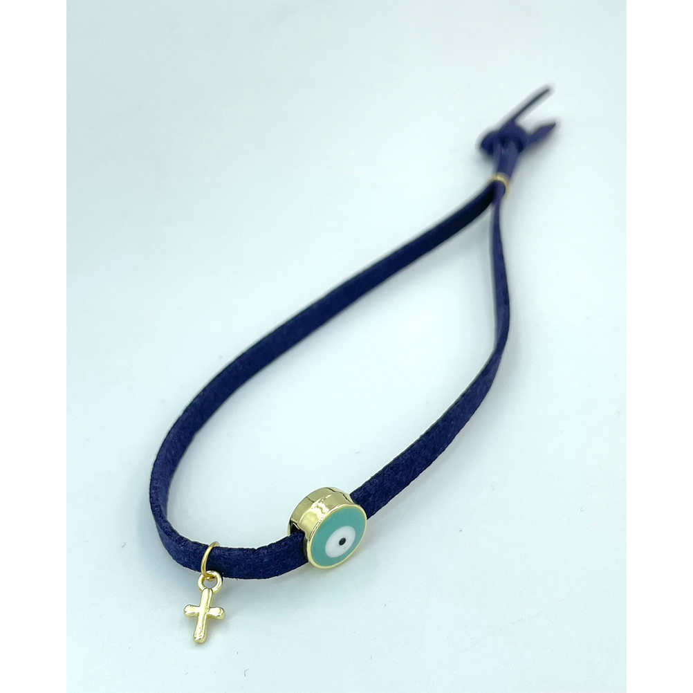 Μαρτυρικά βραχιολάκια για βάπτιση μπλε σκούρο με ματάκι και σταυρουδάκι