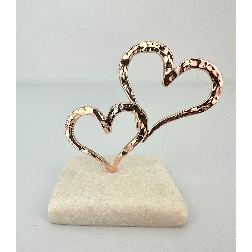 Μπομπονιέρα ροζ χρυσές καρδιές σε βότσαλο