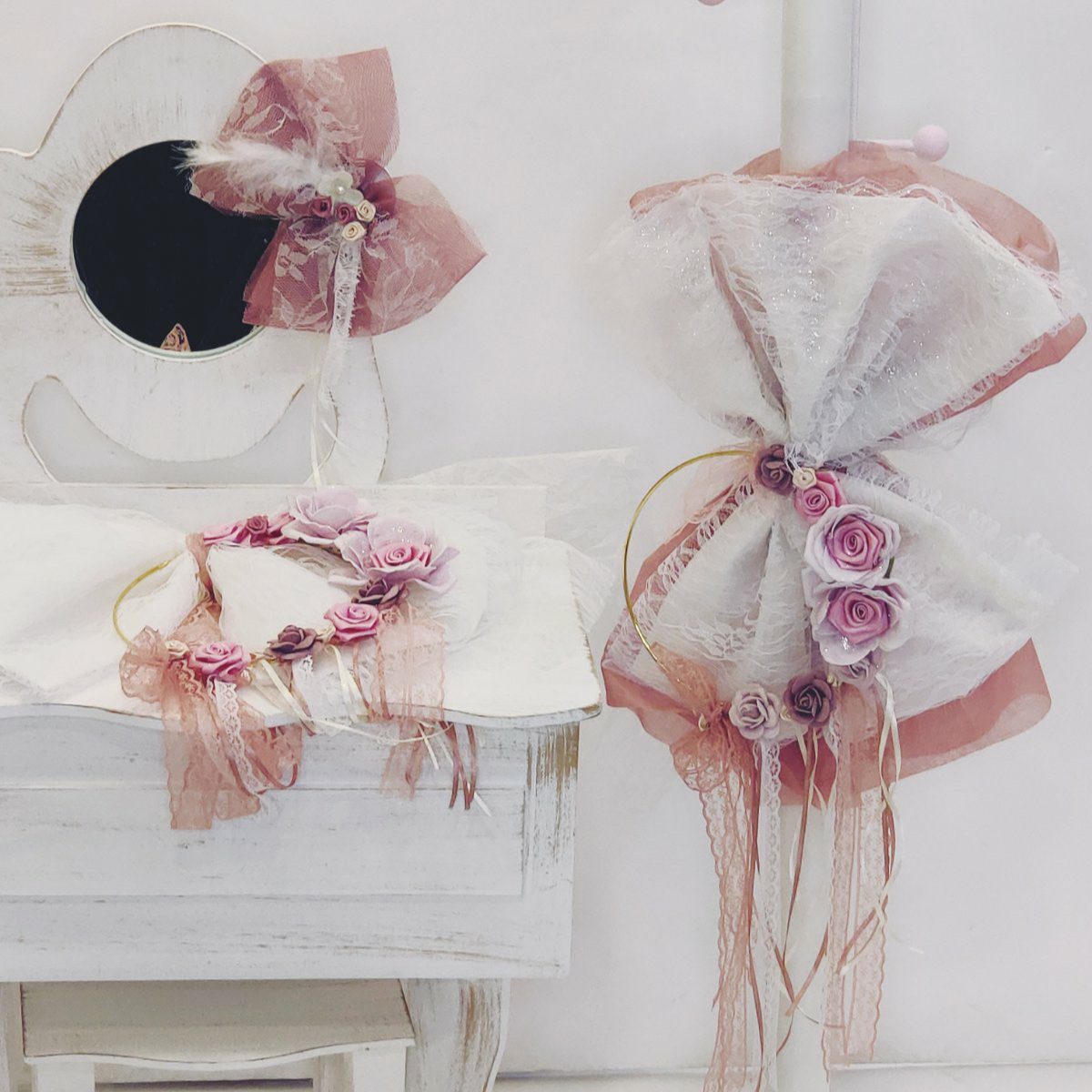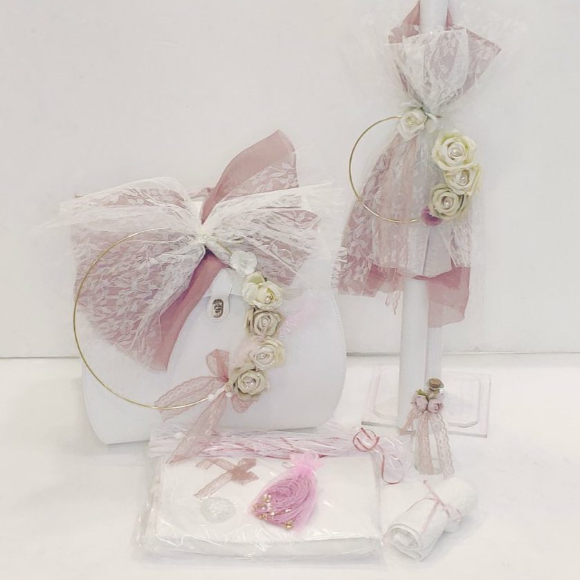 Πλήρες σετ βάπτισης vintage με λουλούδια_Θεματική βάπτιση