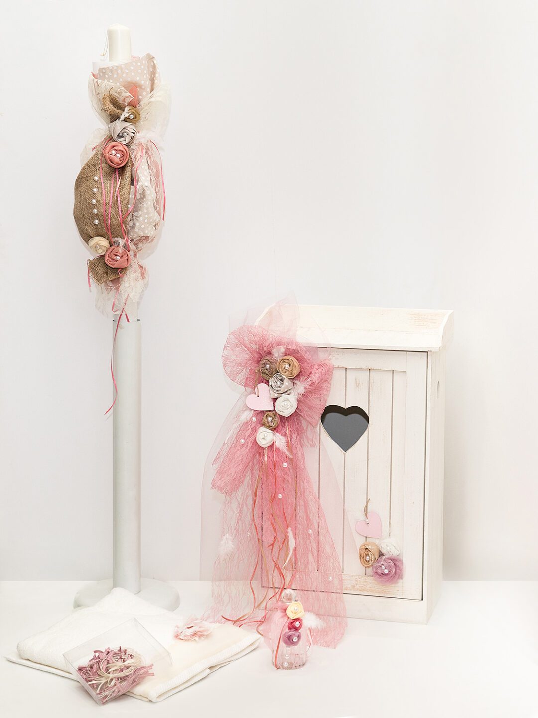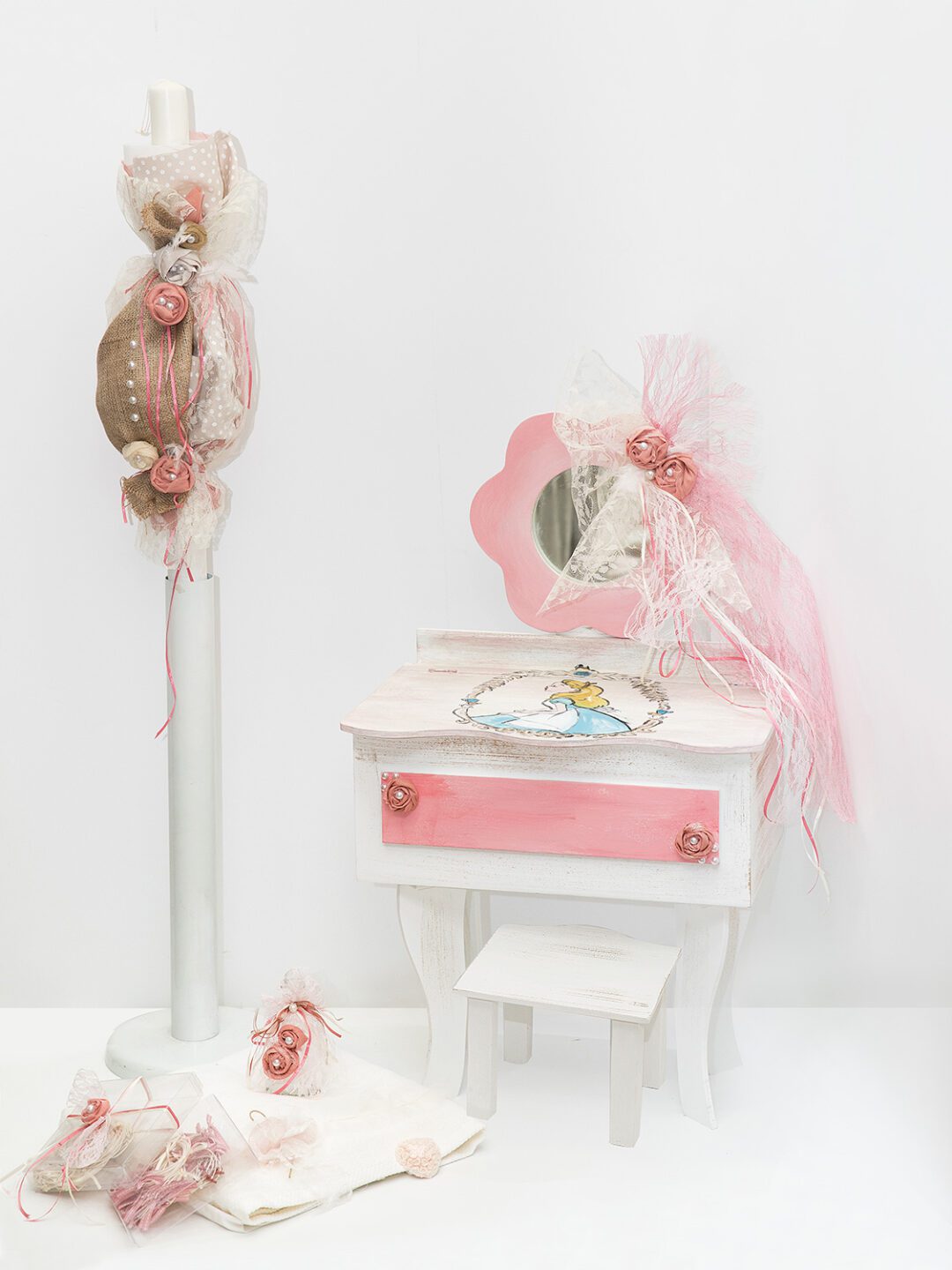 Σετ βάπτισης για κορίτσι με ντουλάπα ξύλινη παλαιομένη με θέμα τα vintage λουλούδια
