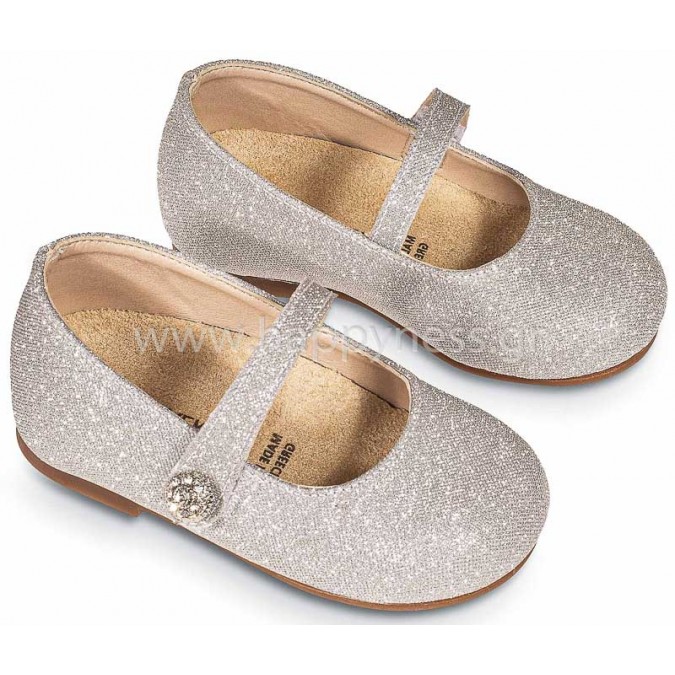 Βαπτιστικά παπούτσια γοβάκι με στρασένιο κουμπάκι