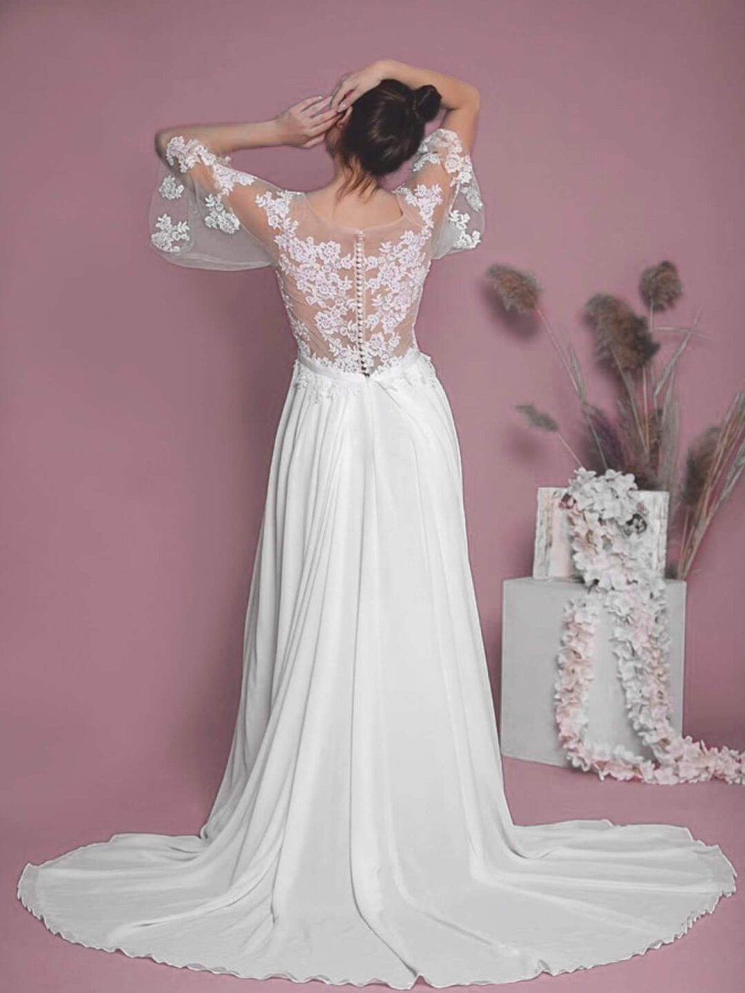 Αέρινο νυφικό φόρεμα από μεταξωτή μουσελίνα