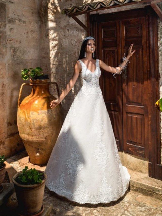 Εντυπωσιακό νυφικό με ολοκέντητη δαντέλα