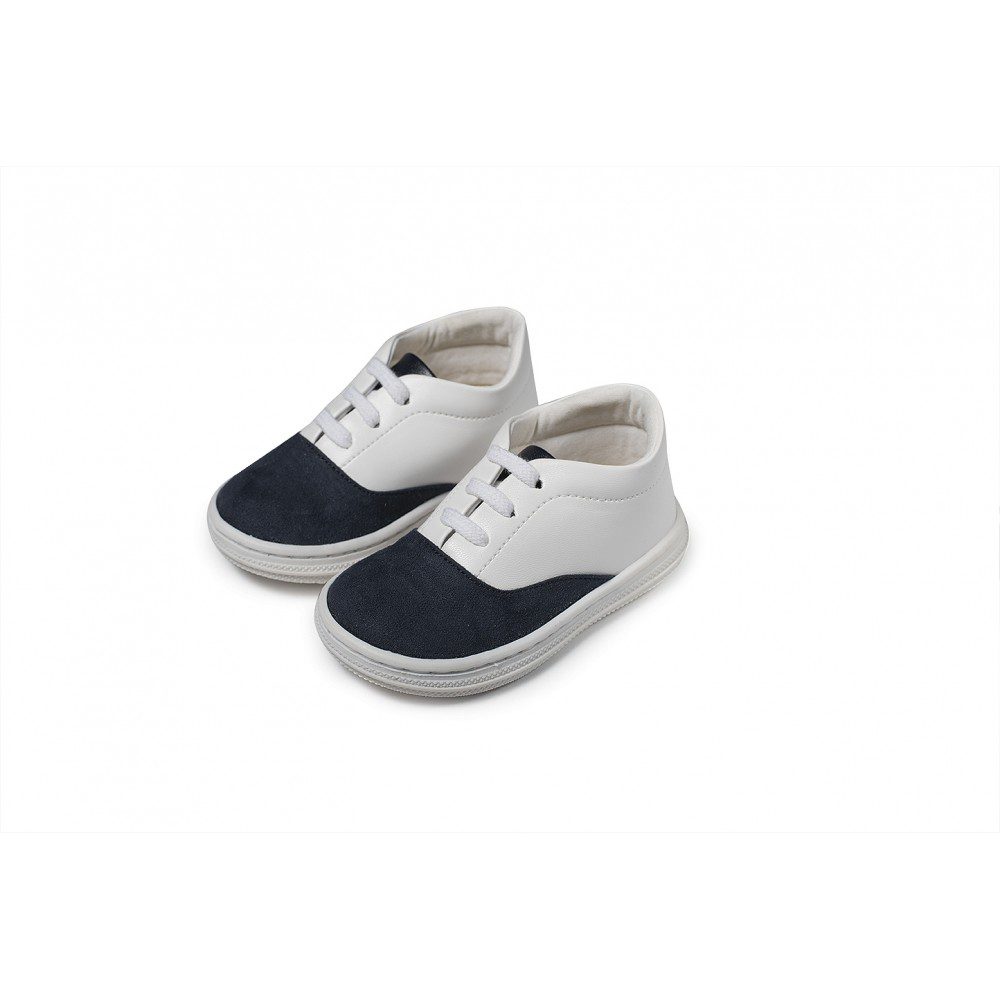 Χειροποίητα βαπτιστικά παπουτσάκια sneakers από δέρμα και καστόρ, δετά. Σε μπεζ και μπλε σκούρο. Ελληνικής ραφής
