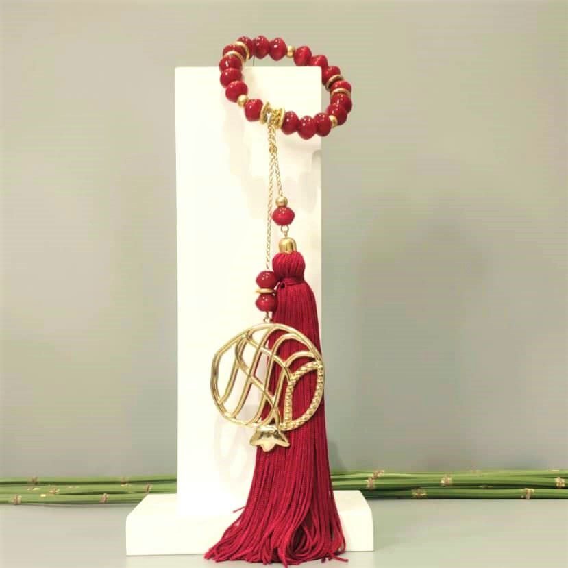 Γούρι 2023 με ρόδι και χάντρες, διακοσμητικά στοιχεία επιχρυσωμένα με 24 καράτια , με σατέν κορδόνι και μεταξωτή φούντα. Μήκος 32εκ. Ένα πολυτελές γούρι, ιδανικό δώρο για το σπίτι ή το γραφείο. Ένα υπέροχο γιορτινό δώρο για τα αγαπημένα μας πρόσωπα!