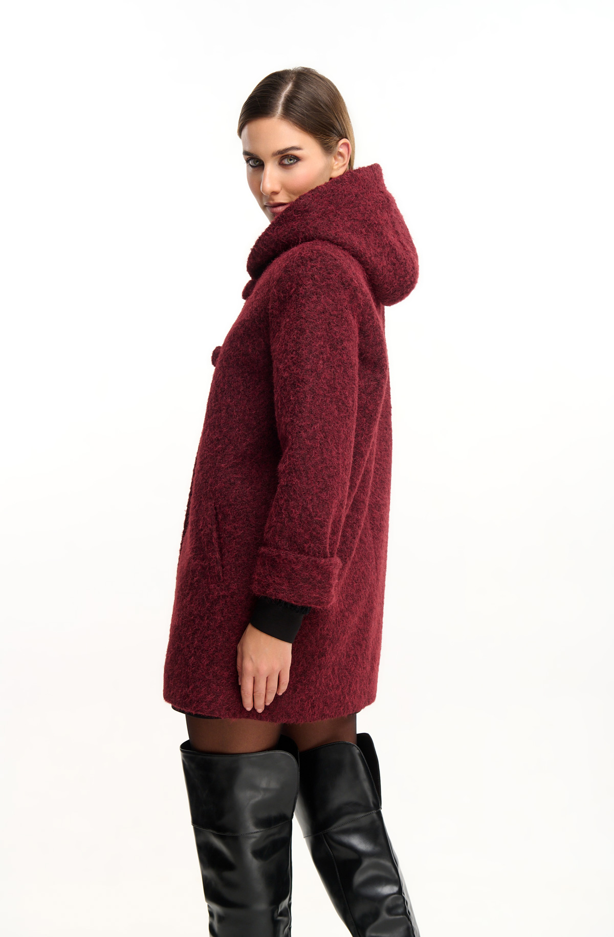 Γυναικείο παλτό με κουκούλα. Διαθέτει κουκούλα, πλαϊνές τσέπες και κλείσιμο με κουμπιά. Είναι ελληνικής κατασκευής.