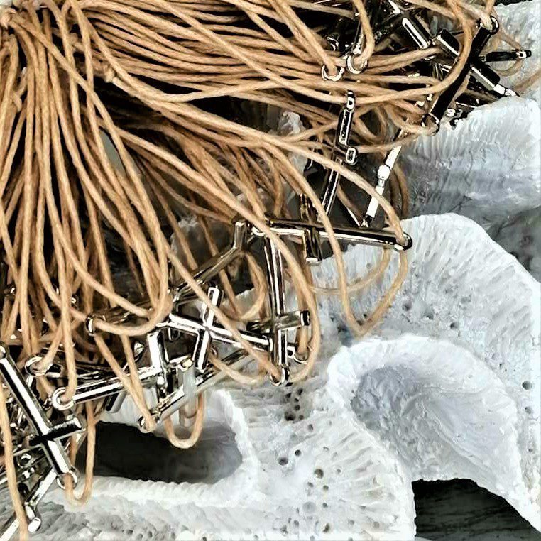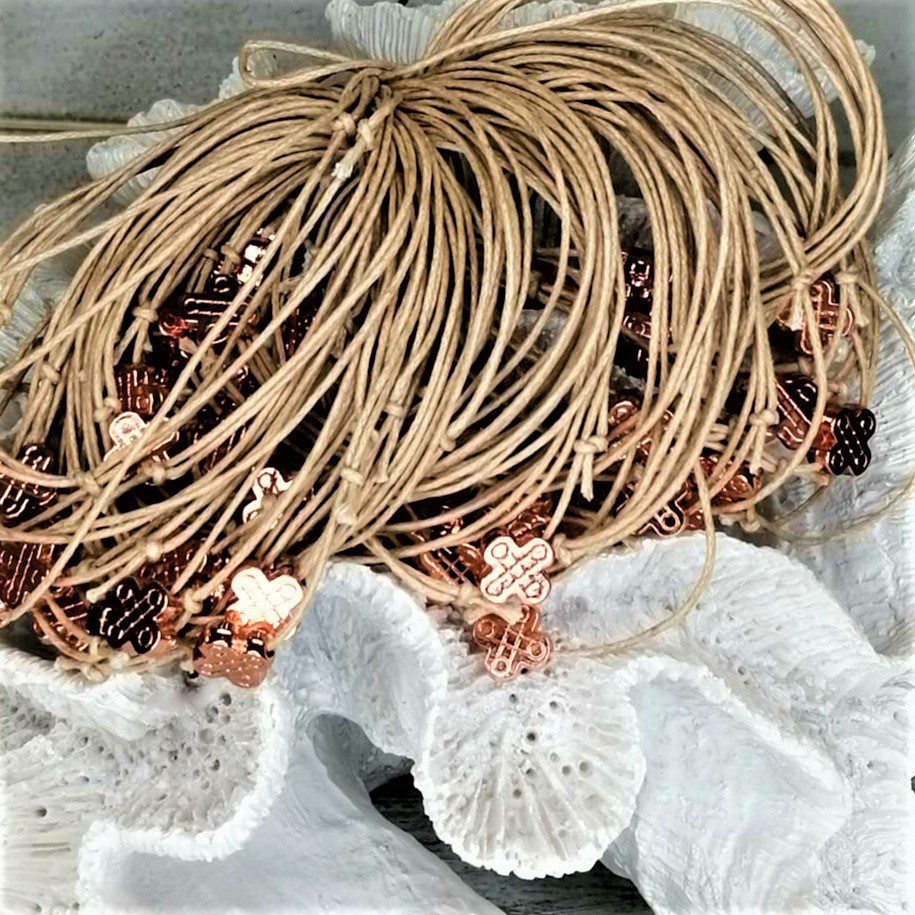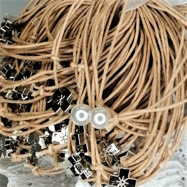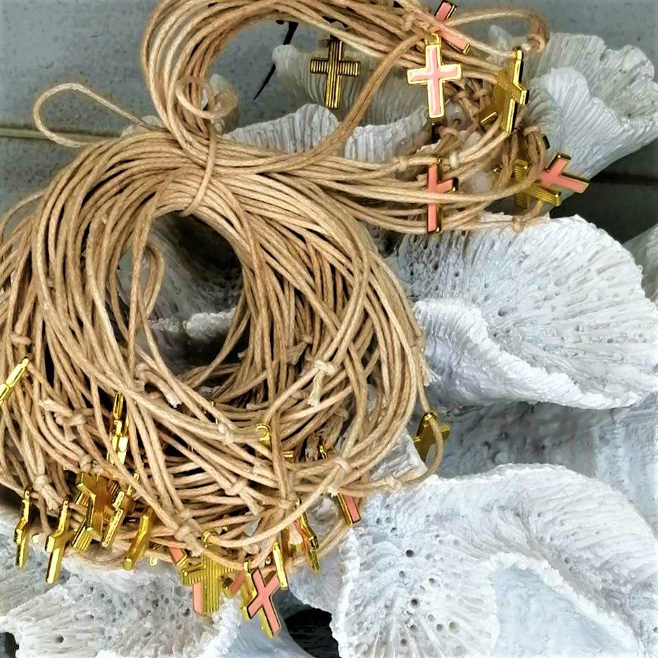 Μαρτυρικά βραχιολάκια για βάπτιση με σταυρό. Η επιλογή χρώματος στο κορδονάκι και τις χάντρες είναι δική σας. Το κουτί περιλαμβάνει 50 τεμάχια. Είναι χειροποίητα και η παράδοση τους γίνεται σε 10-12 ημέρες.