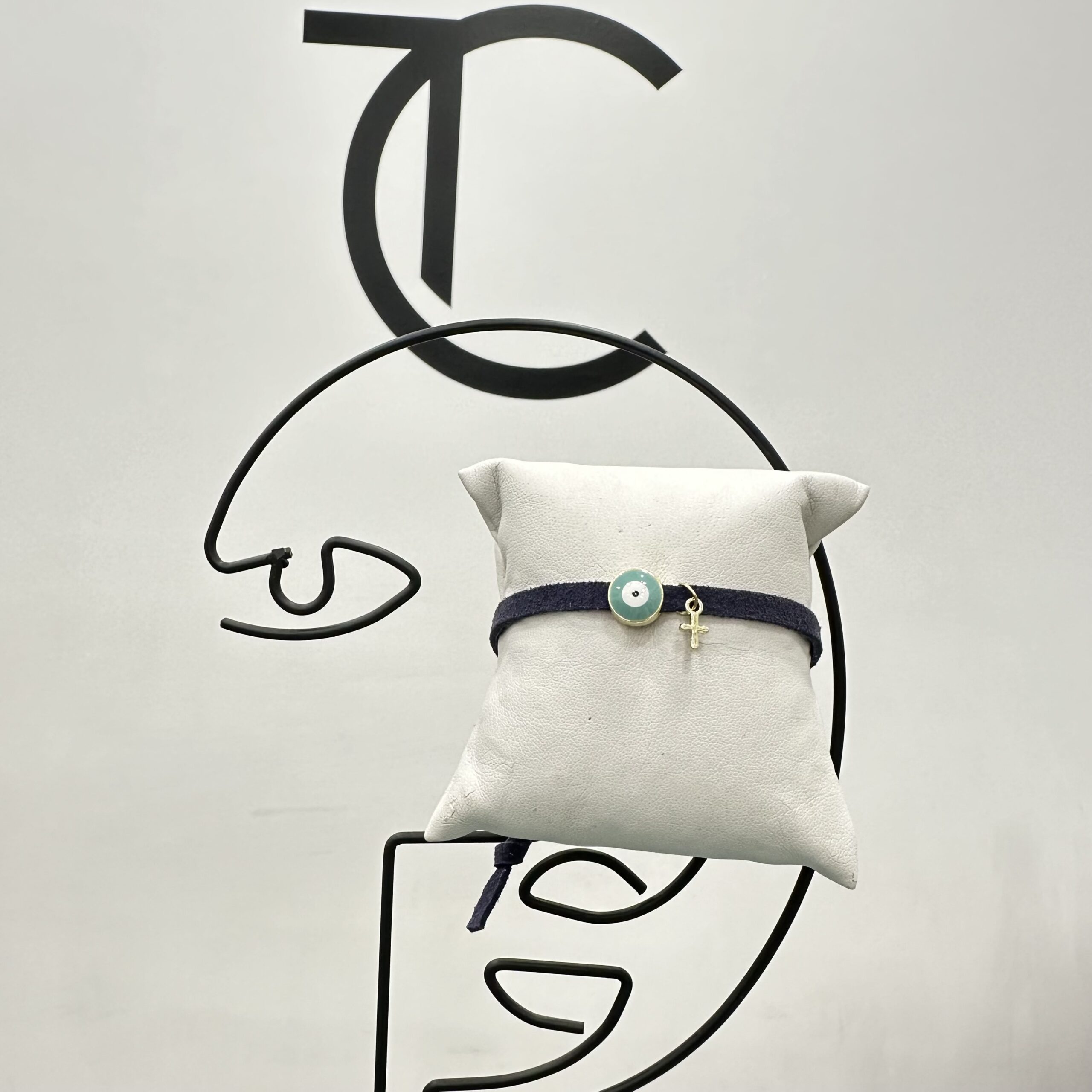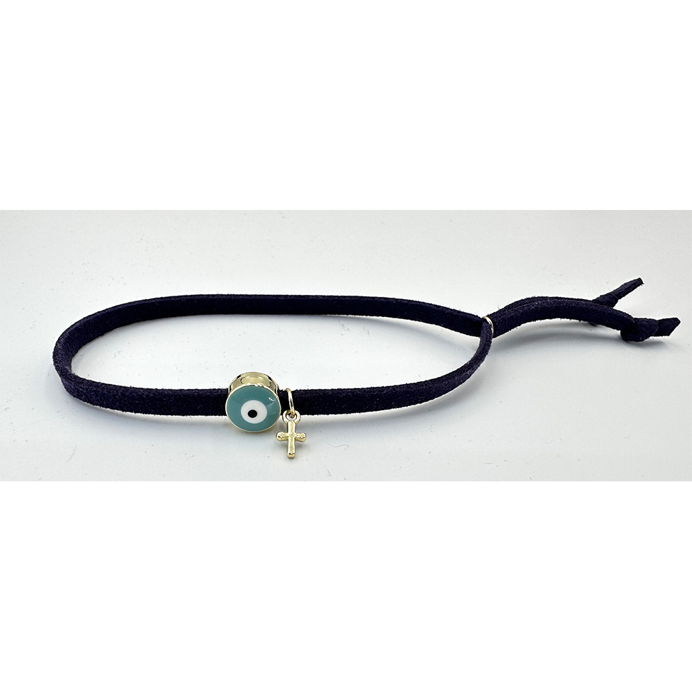 Μαρτυρικά βραχιολάκια για βάπτιση μπλε σκούρο με ματάκι και σταυρουδάκι. Η επιλογή χρώματος στο κορδονάκι είναι δική σας. Το κουτί περιλαμβάνει 50 τεμάχια.