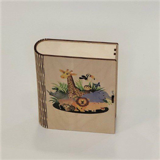 Μπομπονιέρα βάπτισης ξύλινο κουτάκι αποθήκευσης, με ψηφιακή εκτύπωση του θέματος της επιλογής σας. Διαστάσεις ύψος 11,5εκ. πλάτος 9 εκ. Ελάχιστη παραγγελία 20 τεμάχια.